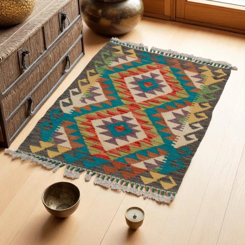 Tapis Kilim Chobi 85x60 kilim en laine afghane tissé main