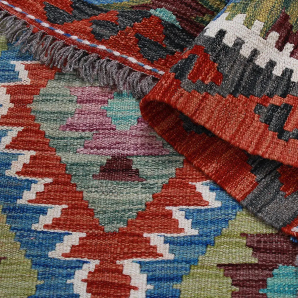 Les tapis Kilim Chobi sont très populaires dans le monde entier. En Afghanistan, ils sont tissés à la main par les nomades et les villageois. Ce type de tapis Kilim afghan est plus dense et plus compact que les autres tapis Kilim. Une technique spéciale est utilisée pour le tissage, ce qui les rend plus fins et donc relativement plus rapides à tisser que les tapis Oriental traditionnels. Après leur fabrication, ils sont lavés quatre fois et séchés au soleil. Les tapis Kilim afghans ont un design antique traditionnel et chaleureux, mais ils sont souvent disponibles dans une version plus moderne. Ils sont très populaires, principalement parce qu'ils s'harmonisent parfaitement avec les couleurs de la plupart des pièces et qu'ils entrent dans la catégorie des tapis colorés à prix raisonnable. Ils peuvent être utilisés comme élément décoratif dans la maison, comme tapis mural ou comme revêtement de sol traditionnel. Le Kilim est le tapis idéal pour le salon ou même pour les couloirs ou les halls d'entrée en tant que tapis coureur.