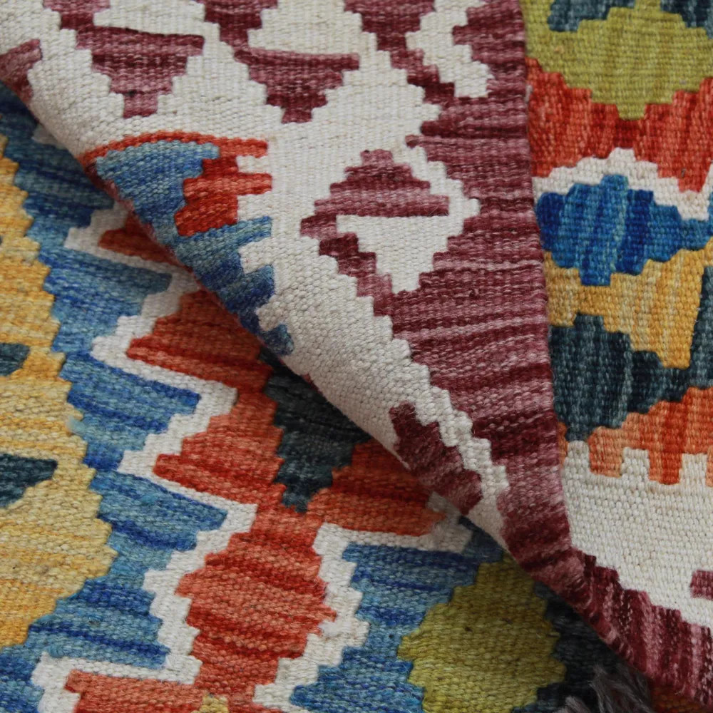 Les tapis Kilim Chobi sont très populaires dans le monde entier. En Afghanistan, ils sont tissés à la main par les nomades et les villageois. Ce type de tapis Kilim afghan est plus dense et plus compact que les autres tapis Kilim. Une technique spéciale est utilisée pour le tissage, ce qui les rend plus fins et donc relativement plus rapides à tisser que les tapis Oriental traditionnels. Après leur fabrication, ils sont lavés quatre fois et séchés au soleil. Les tapis Kilim afghans ont un design antique traditionnel et chaleureux, mais ils sont souvent disponibles dans une version plus moderne. Ils sont très populaires, principalement parce qu'ils s'harmonisent parfaitement avec les couleurs de la plupart des pièces et qu'ils entrent dans la catégorie des tapis colorés à prix raisonnable. Ils peuvent être utilisés comme élément décoratif dans la maison, comme tapis mural ou comme revêtement de sol traditionnel. Le Kilim est le tapis idéal pour le salon ou même pour les couloirs ou les halls d'entrée en tant que tapis coureur.