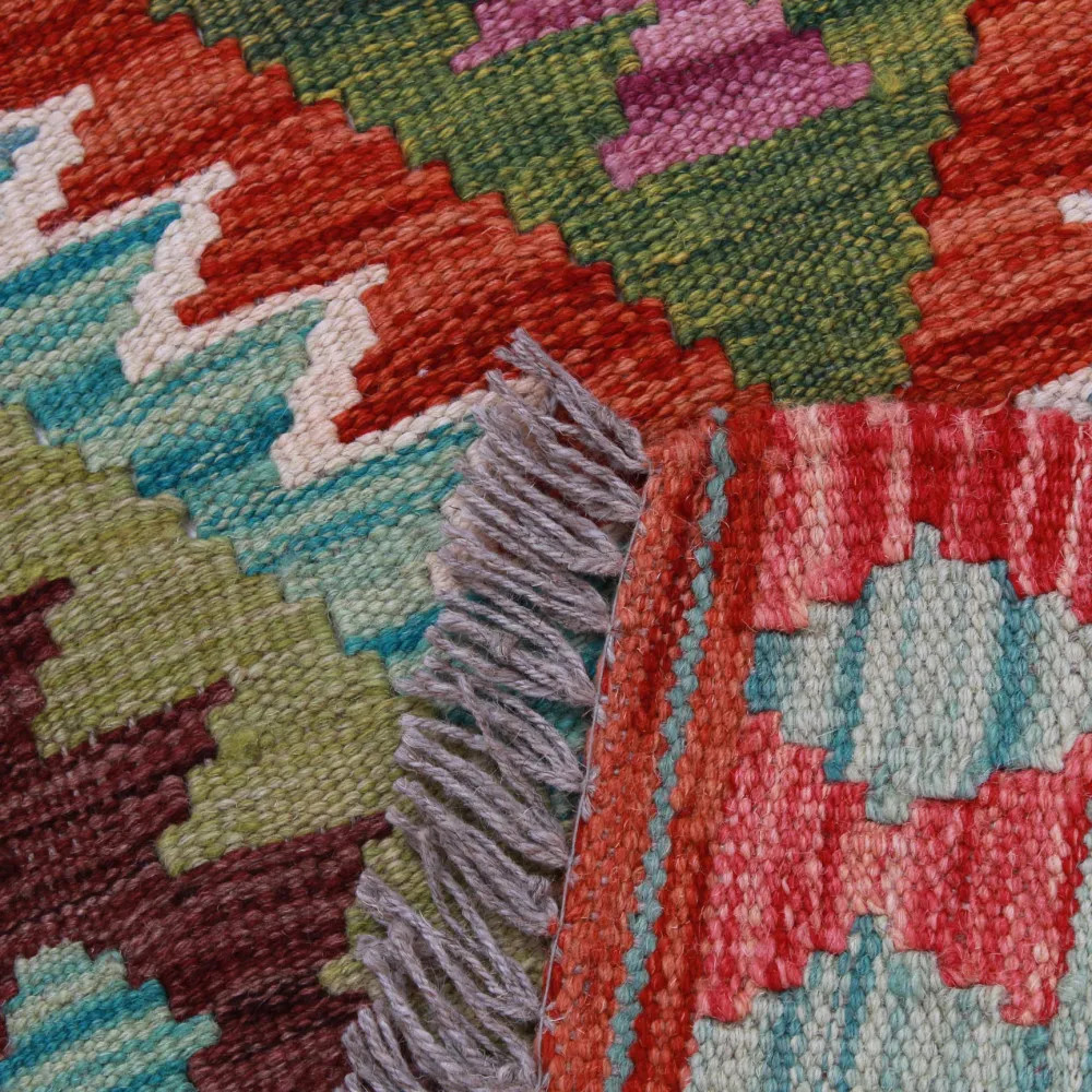 Les tapis Kilim Chobi sont très populaires dans le monde entier. En Afghanistan, ils sont tissés à la main par les nomades et les villageois. Ce type de tapis Kilim afghan est plus dense et plus compact que les autres tapis Kilim. Une technique spéciale est utilisée pour le tissage, ce qui les rend plus fins et donc relativement plus rapides à tisser que les tapis Oriental traditionnels. Après leur fabrication, ils sont lavés quatre fois et séchés au soleil. Les tapis Kilim afghans ont un design antique traditionnel et chaleureux, mais ils sont souvent disponibles dans une version plus moderne. Ils sont très populaires, principalement parce qu'ils s'harmonisent parfaitement avec les couleurs de la plupart des pièces et qu'ils entrent dans la catégorie des tapis colorés à prix raisonnable. Ils peuvent être utilisés comme élément décoratif dans la maison, comme tapis mural ou comme revêtement de sol traditionnel. Le Kilim est le tapis idéal pour le salon ou même pour les couloirs ou les halls d'entrée en tant que tapis coureur.