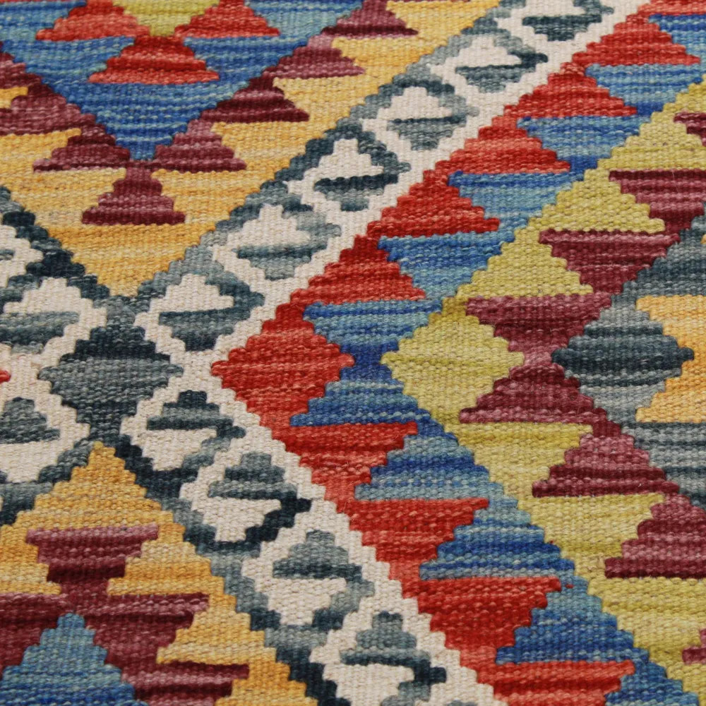 Les tapis Kilim Chobi sont très populaires dans le monde entier. En Afghanistan, ils sont tissés à la main par les nomades et les villageois. Ce type de tapis Kilim afghan est plus dense et plus compact que les autres tapis Kilim. Une technique spéciale est utilisée pour le tissage, ce qui les rend plus fins et donc relativement plus rapides à tisser que les tapis Oriental traditionnels. Après leur fabrication, ils sont lavés quatre fois et séchés au soleil. Les tapis Kilim afghans ont un design antique traditionnel et chaleureux, mais ils sont souvent disponibles dans une version plus moderne. Ils sont très populaires, principalement parce qu'ils s'harmonisent parfaitement avec les couleurs de la plupart des pièces et qu'ils entrent dans la catégorie des tapis colorés à prix raisonnable. Ils peuvent être utilisés comme élément décoratif dans la maison, comme tapis mural ou comme revêtement de sol traditionnel. Le Kilim est le tapis idéal pour le salon ou même pour les couloirs ou les halls d'entrée en tant que tapis coureur.