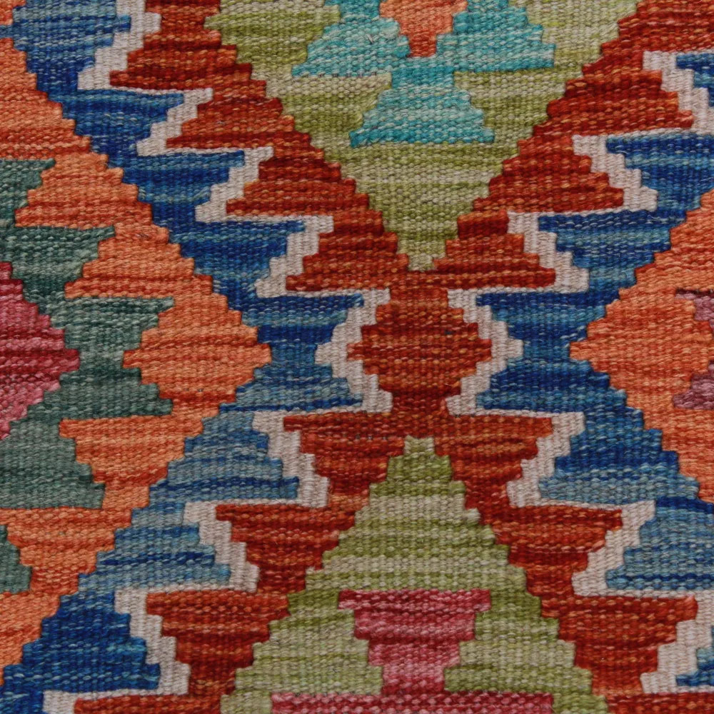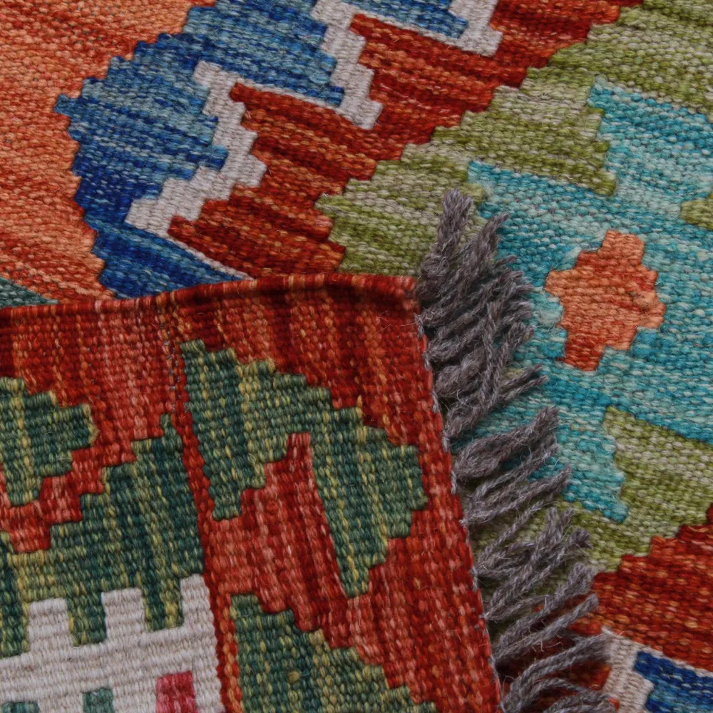 Les tapis Kilim Chobi sont très populaires dans le monde entier. En Afghanistan, ils sont tissés à la main par les nomades et les villageois. Ce type de tapis Kilim afghan est plus dense et plus compact que les autres tapis Kilim. Une technique spéciale est utilisée pour le tissage, ce qui les rend plus fins et donc relativement plus rapides à tisser que les tapis Oriental traditionnels. Après leur fabrication, ils sont lavés quatre fois et séchés au soleil. Les tapis Kilim afghans ont un design antique traditionnel et chaleureux, mais ils sont souvent disponibles dans une version plus moderne. Ils sont très populaires, principalement parce qu'ils s'harmonisent parfaitement avec les couleurs de la plupart des pièces et qu'ils entrent dans la catégorie des tapis colorés à prix raisonnable. Ils peuvent être utilisés comme élément décoratif dans la maison, comme tapis mural ou comme revêtement de sol traditionnel. Le Kilim est le tapis idéal pour le salon ou même pour les couloirs ou les halls d'entrée en tant que tapis coureur.