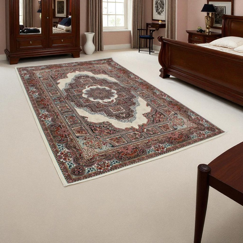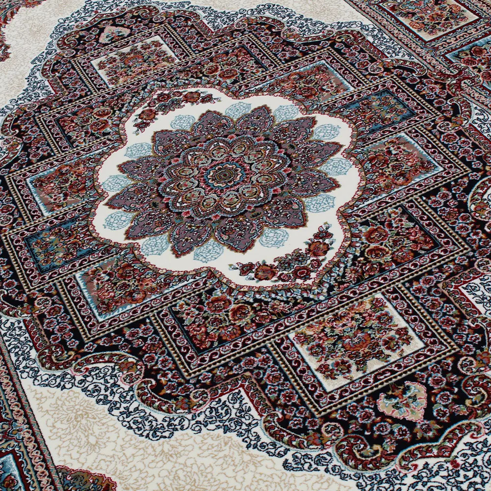 Ce tapis de 140x200 cm est fabriqué en Iran avec un matériau acrylique premium, garantissant une longue durée de vie et un entretien facile. Avec près d'un million de nœuds par mètre carré, il offre une densité remarquable. Sa texture et son apparence rappellent celles de la laine, créant une atmosphère élégante dans n'importe quelle pièce. Les couleurs riches et harmonieuses du tapis persan intensifient le confort de votre salon ou chambre à coucher. Il est également idéal pour les pièces avec chauffage au sol grâce à ses propriétés isolantes. Robuste, il conserve sa beauté à long terme, offrant une alternative économique aux tapis faits main. Sécuritaire pour tous les membres de la famille grâce à ses matériaux hypoallergéniques, ce tapis est parfait pour toute pièce, que ce soit un salon, une chambre ou un bureau élégant.