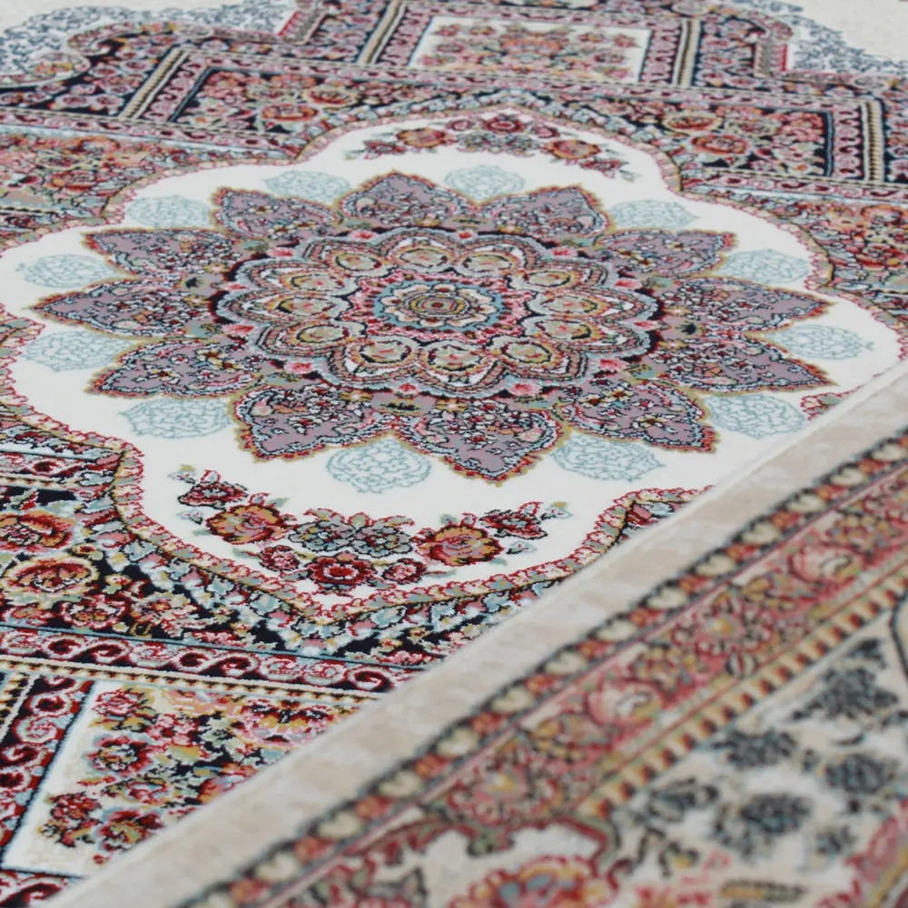Le tapis persan en acrylique a des propriétés similaires à celles d'un tapis en laine noué à la main. Toutefois, la mite n'endommage pas le tapis en acrylique, ce qui constitue également un avantage en termes d'utilisation. L'acrylique est la fibre la plus résistante à la lumière du soleil et aux intempéries. La rétention thermique et la douceur des tapis en acrylique sont comparables à celles des tapis en laine. L'acrylique est facile à nettoyer et sèche rapidement. En particulier, son caractère ignifuge en fait un excellent matériau de décoration. Utilisé seul ou en mélange, il est souvent utilisé avec la laine dans les tricots, les cardigans, les pulls et maintenant les tapis. L'acrylique est une fibre synthétique de faible densité, à la texture laineuse, qui ne peluche pas, ne rétrécit pas et est facile à laver. Un tapis persan mécanique durable à un prix abordable. Ajoutez une touche unique à votre intérieur comme tapis de salon ou de chambre à coucher.
