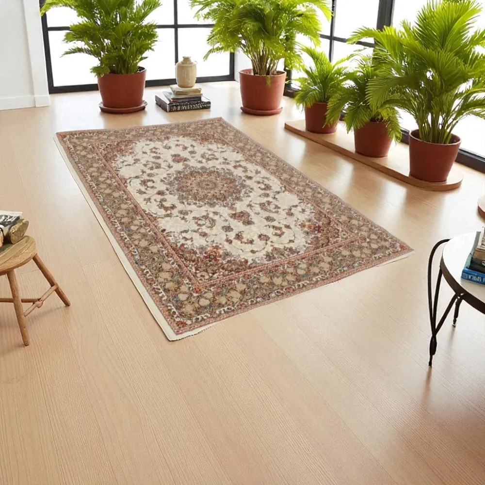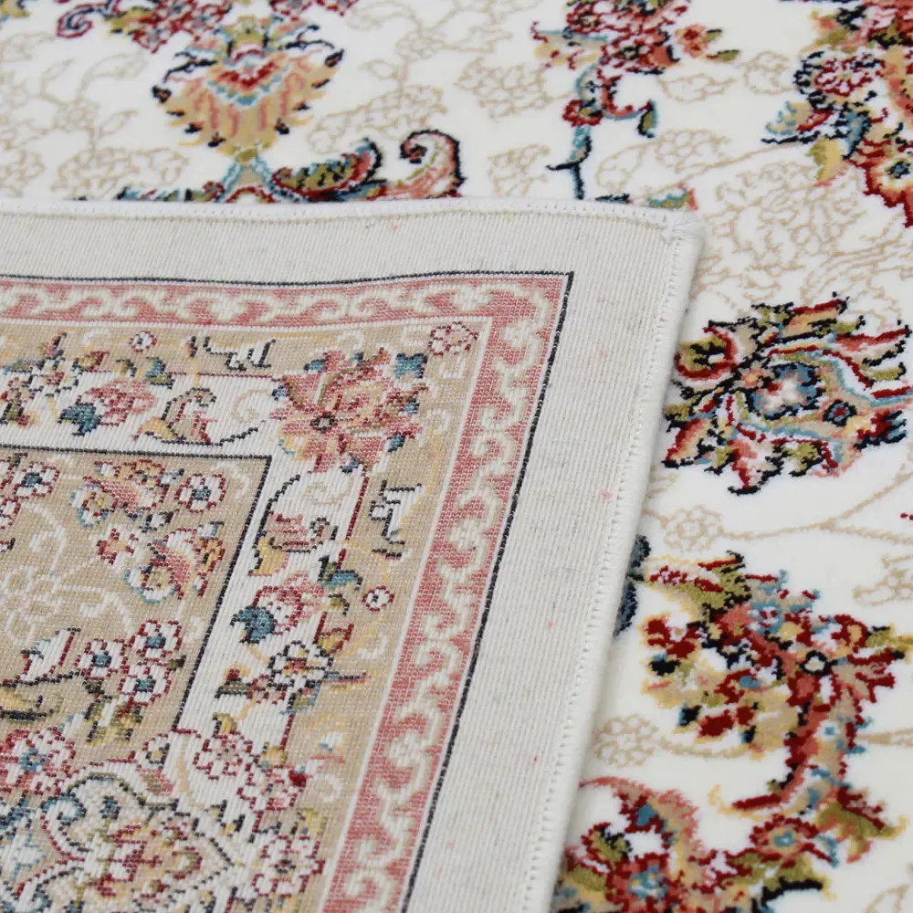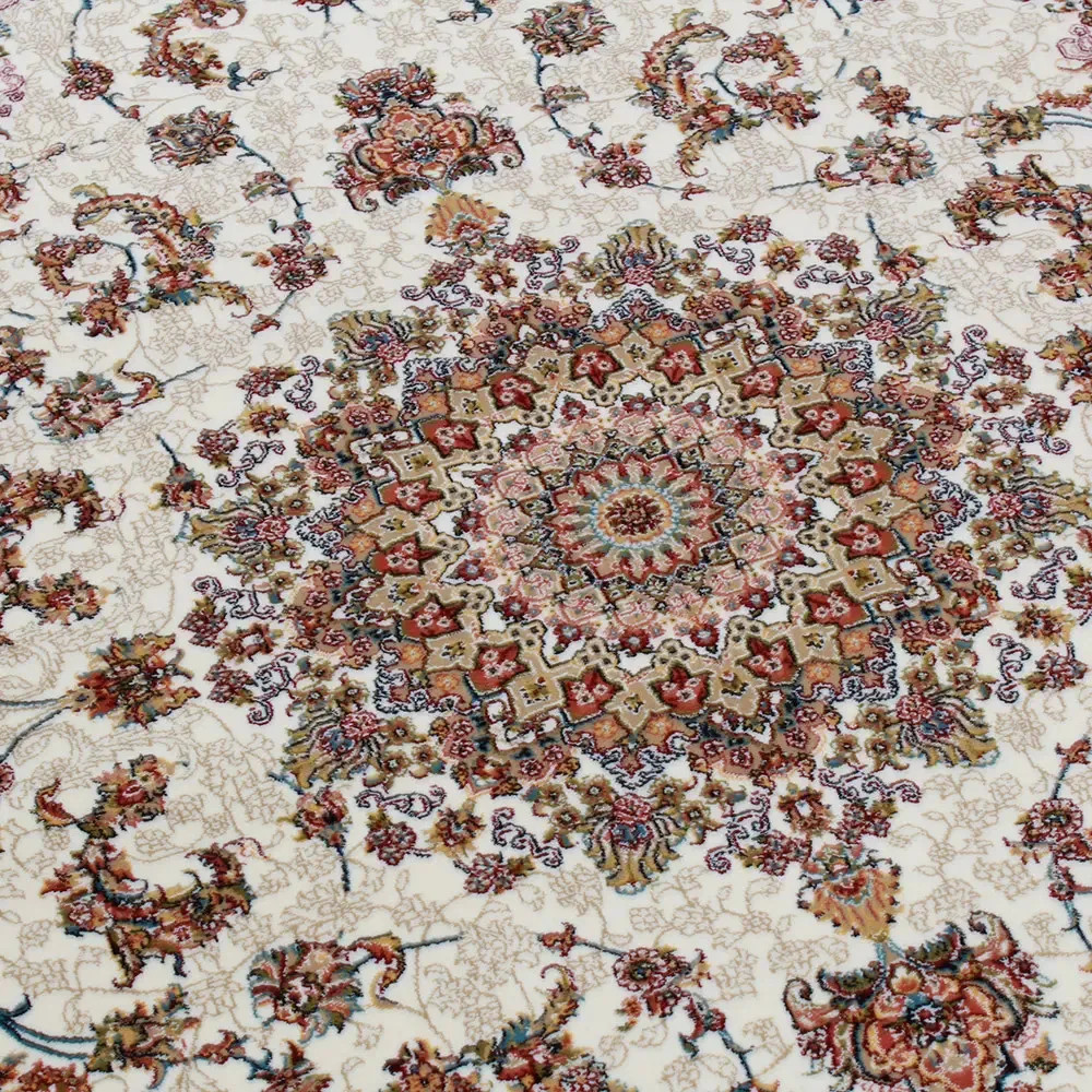 Le tapis persan en acrylique a des propriétés similaires à celles d'un tapis en laine noué à la main. Toutefois, la mite n'endommage pas le tapis en acrylique, ce qui constitue également un avantage en termes d'utilisation. L'acrylique est la fibre la plus résistante à la lumière du soleil et aux intempéries. La rétention thermique et la douceur des tapis en acrylique sont comparables à celles des tapis en laine. L'acrylique est facile à nettoyer et sèche rapidement. En particulier, son caractère ignifuge en fait un excellent matériau de décoration. Utilisé seul ou en mélange, il est souvent utilisé avec la laine dans les tricots, les cardigans, les pulls et maintenant les tapis. L'acrylique est une fibre synthétique de faible densité, à la texture laineuse, qui ne peluche pas, ne rétrécit pas et est facile à laver. Un tapis persan mécanique durable à un prix abordable. Ajoutez une touche unique à votre intérieur comme tapis de salon ou de chambre à coucher.