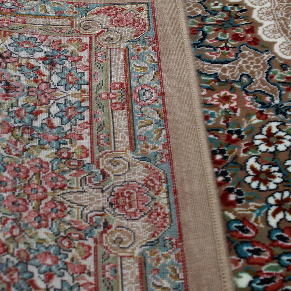 Fabriqué en acrylique de haute qualité, ce tapis évoque l'apparence et la texture du véritable tapis en laine, tout en étant plus résistant et facile à entretenir. Les motifs inspirés des designs traditionnels iraniens comme Tabriz et Isfahan, ajoutent une touche d'authenticité et de sophistication. Avec une épaisseur de 10-12mm, ce tapis offre une isolation thermique exceptionnelle, idéal pour les pièces avec chauffage au sol. En outre, l'acrylique est hypoallergénique, garantissant la sécurité et le confort pour toute la famille. La richesse des couleurs et des motifs crée une atmosphère chaleureuse et accueillante, parfaite pour le salon ou la chambre à coucher.
