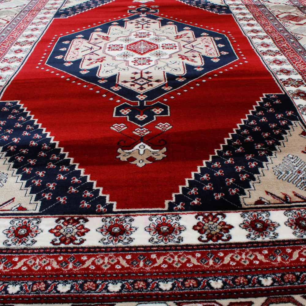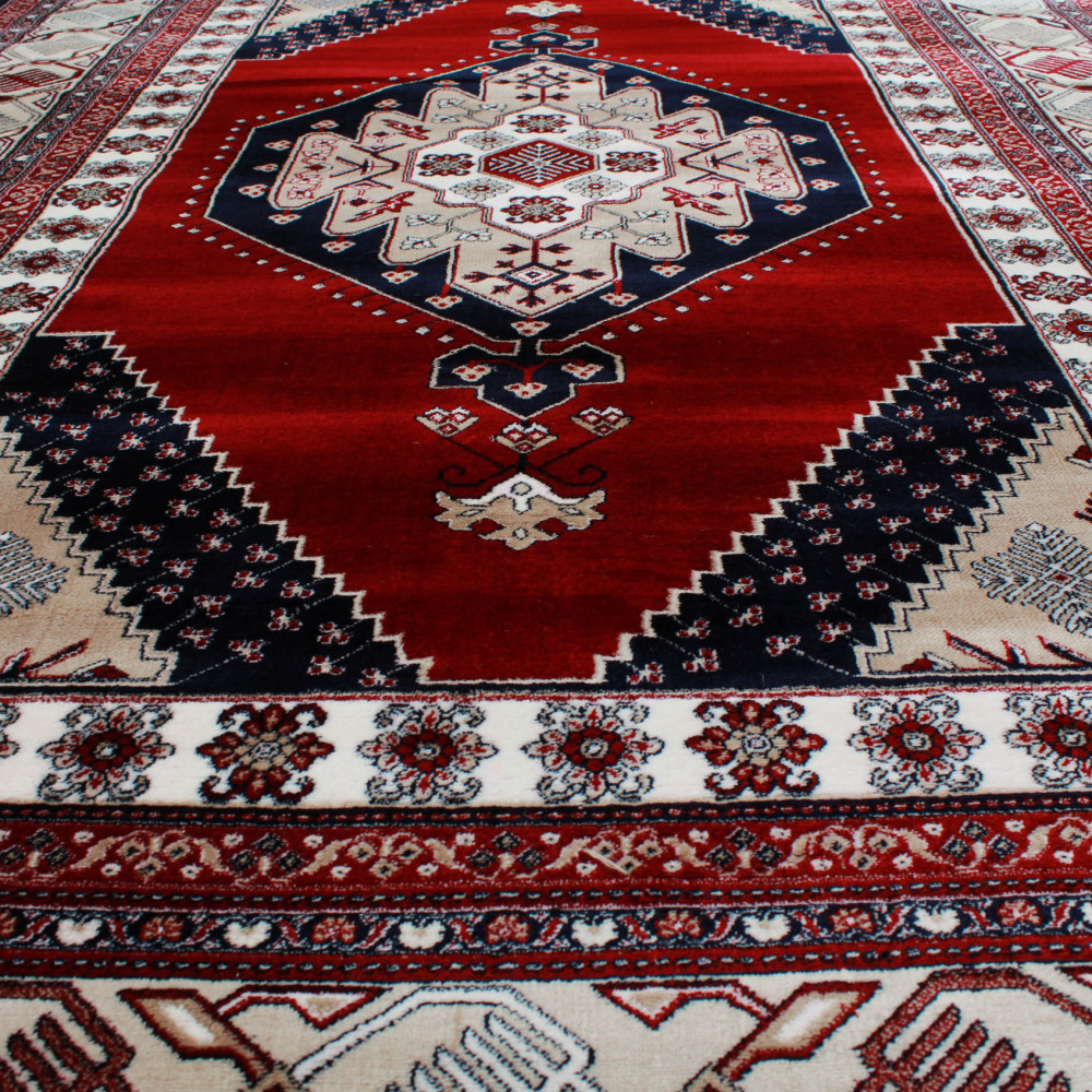 La tapis mécanique classique est particulièrement recommandé pour ceux qui aiment les produits de qualité et esthétiques pour les intérieurs à l'atmosphère classique. Leur prix moins élevé en fait un choix plus intéressant que les tapis faits à la main. Ces tapis mécaniques sont fabriqués en polyester en Turquie. Ils sont considérés comme des tapis mécaniques de première classe. Il y a 550 000 nœuds de machine par mètre carré et ils pèsent 2,2 kg/nm, ce qui est une garantie de haute qualité. Grâce à son toucher doux, il peut même être utilisé comme tapis de chambre. Ils sont d'un prix raisonnable, mais de grande qualité. Avec leurs motifs et leurs couleurs orientales, ils créent une atmosphère unique en tant que tapis de salon ou même de couloir.