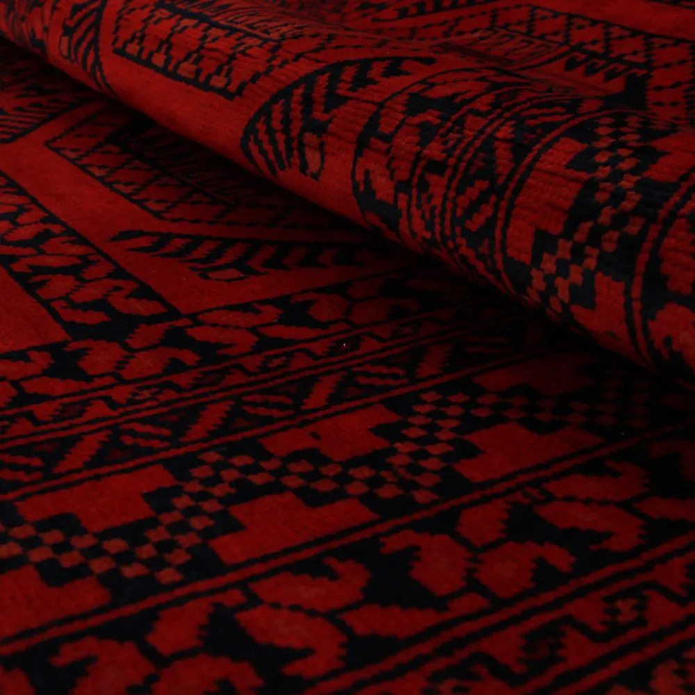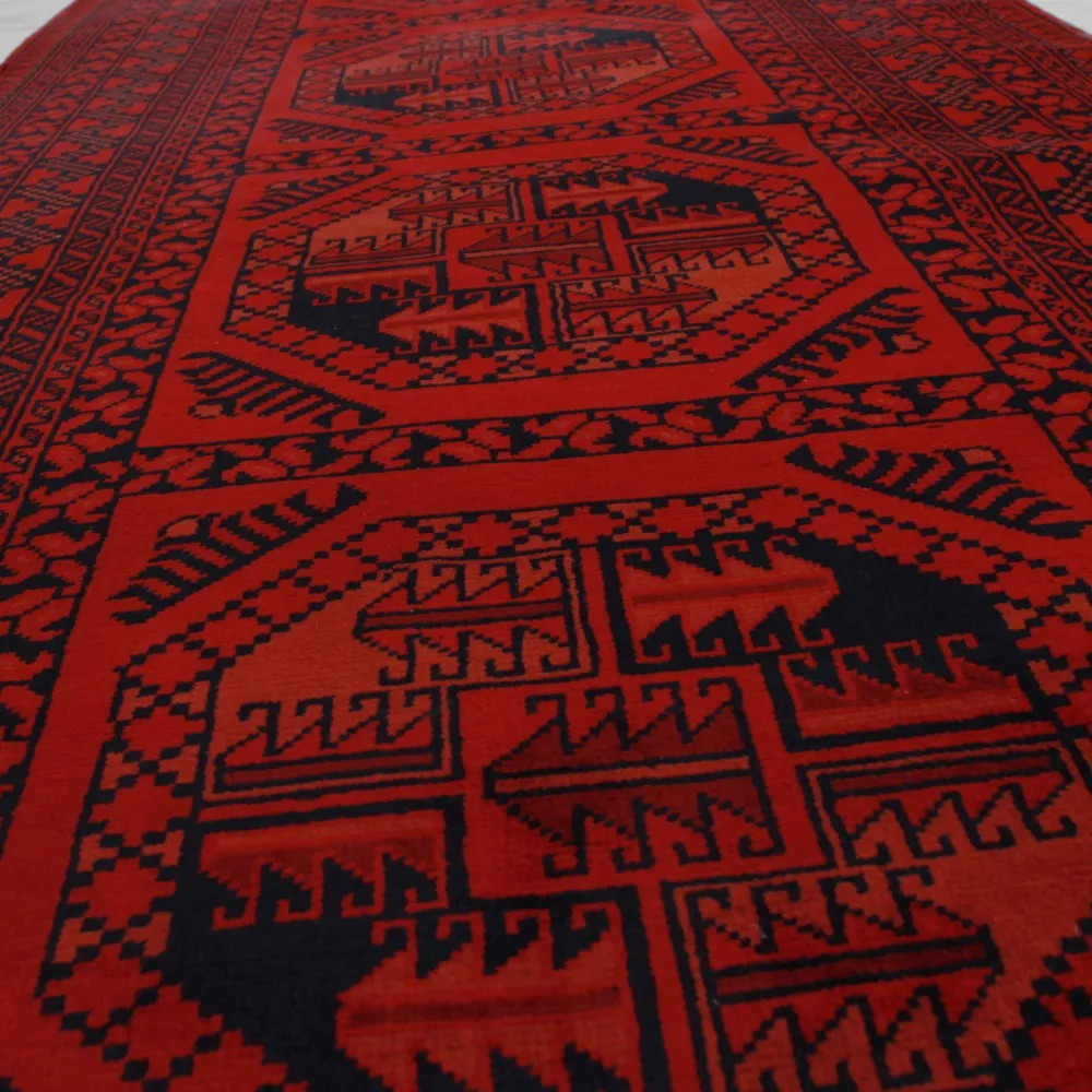 Les deux types de tapis de laine afghans les plus populaires sont le Khal Mohammadi et le Kargai. Les tapis afghans sont faits à la main par les Turkmènes dans le nord de l'Afghanistan. Dans certains cas, ce type de tapis Oriental est également fait au Pakistan par des Turkmènes qui ont émigré au Pakistan. Les couleurs primaires sont le rouge foncé ou le marron dans différentes nuances. De nombreuses personnes pensent que plus le tapis est dense et épais, plus il est de qualité et durable. Dans les tapis Oriental faits main, l'épaisseur est une question de cisaillement. La durabilité est le résultat de la densité du nouage et de la qualité du matériau. Avec leur variété de motifs et de couleurs, ils donnent à votre intérieur une touche unique en tant que tapis de salon ou de chambre à coucher. Pour les couloirs, nous avons des tapis coureurs qui sont moins larges mais plus longs.