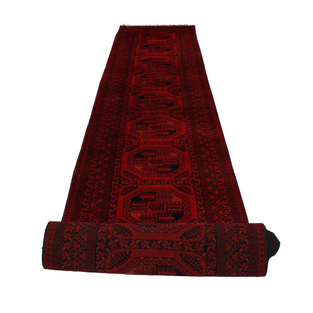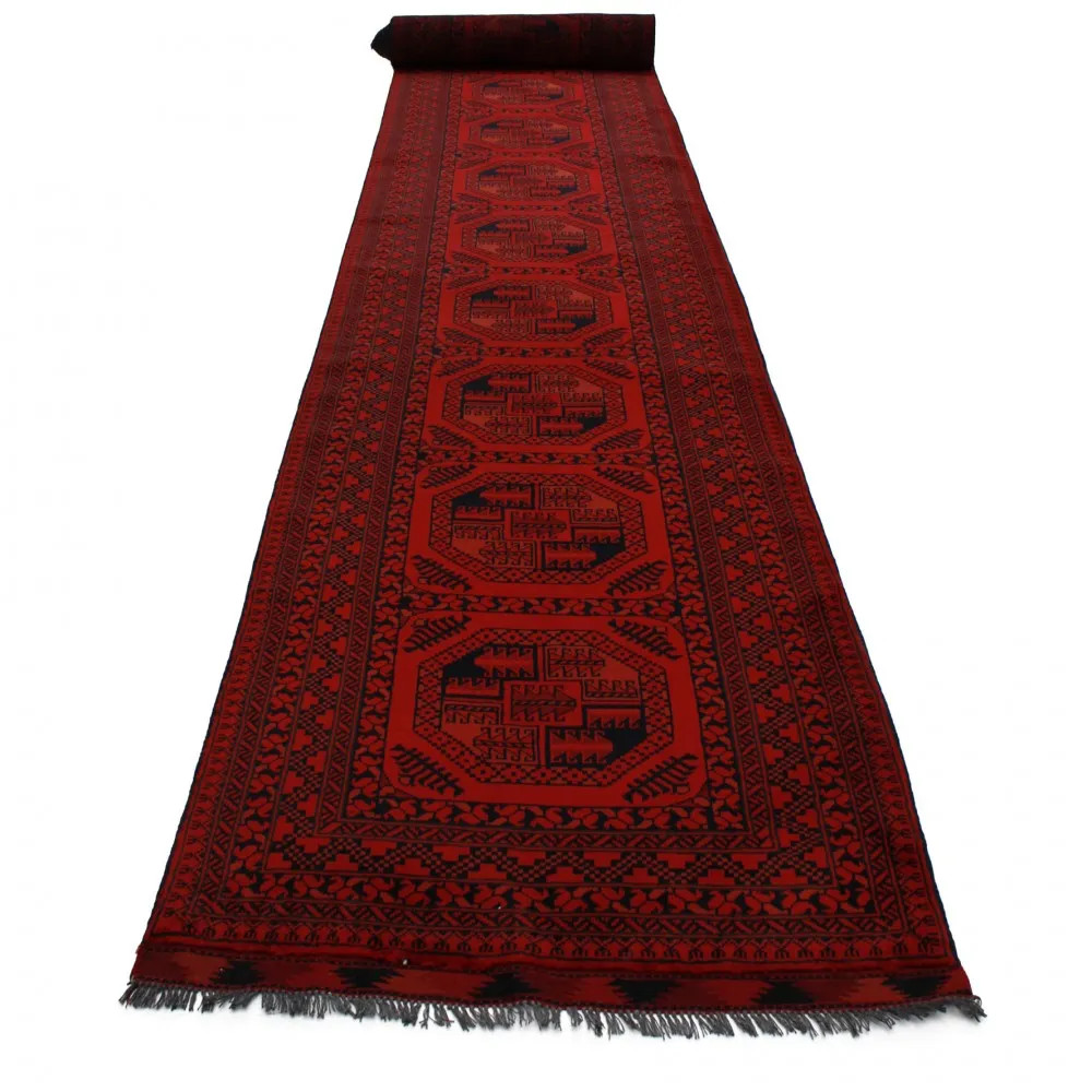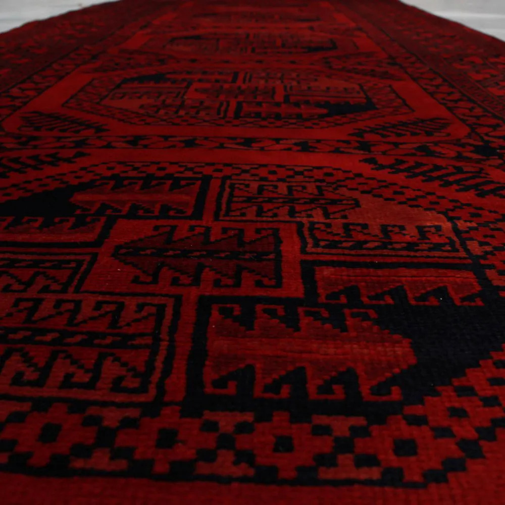 Les deux types de tapis de laine afghans les plus populaires sont le Khal Mohammadi et le Kargai. Les tapis afghans sont faits à la main par les Turkmènes dans le nord de l'Afghanistan. Dans certains cas, ce type de tapis Oriental est également fait au Pakistan par des Turkmènes qui ont émigré au Pakistan. Les couleurs primaires sont le rouge foncé ou le marron dans différentes nuances. De nombreuses personnes pensent que plus le tapis est dense et épais, plus il est de qualité et durable. Dans les tapis Oriental faits main, l'épaisseur est une question de cisaillement. La durabilité est le résultat de la densité du nouage et de la qualité du matériau. Avec leur variété de motifs et de couleurs, ils donnent à votre intérieur une touche unique en tant que tapis de salon ou de chambre à coucher. Pour les couloirs, nous avons des tapis coureurs qui sont moins larges mais plus longs.