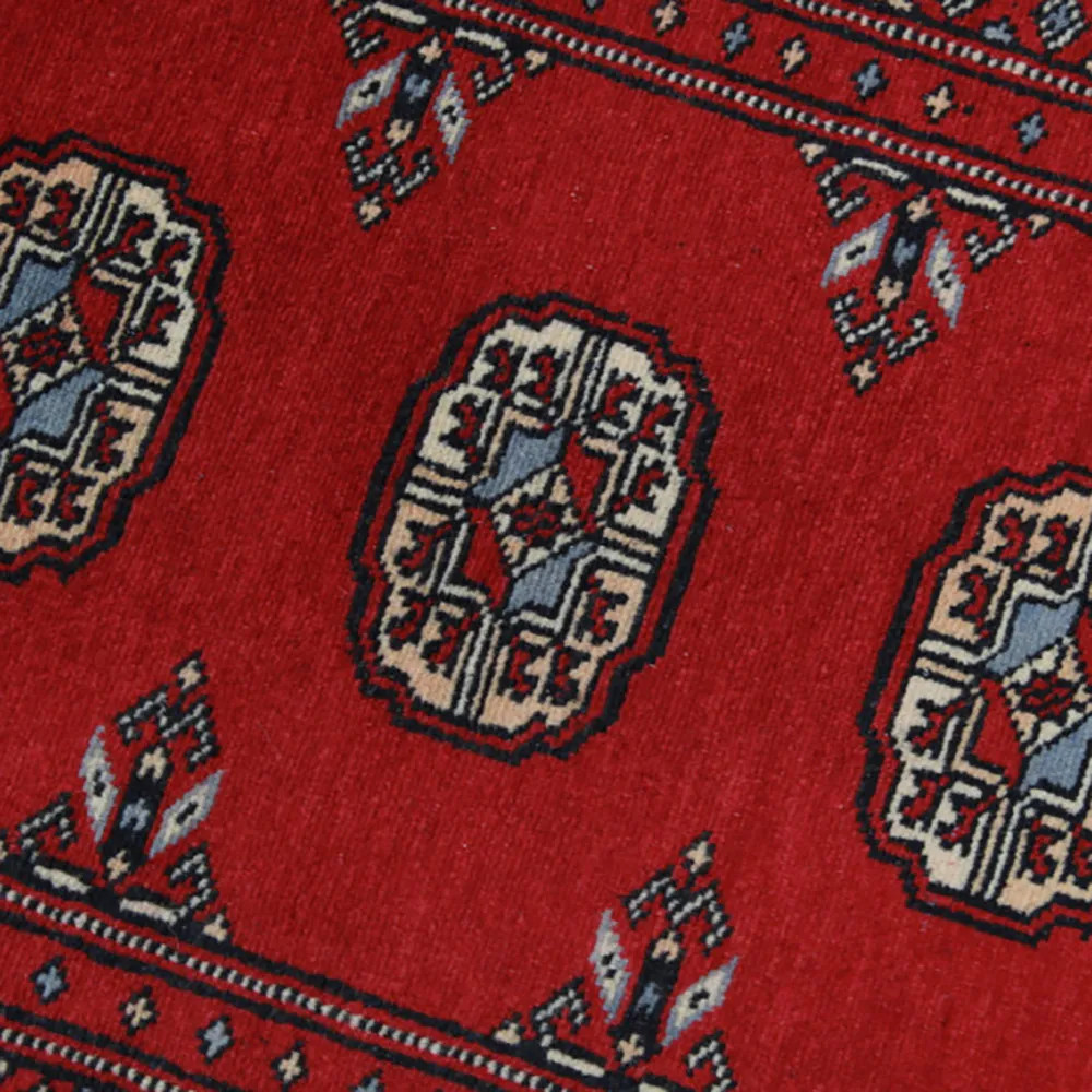 Le tapis pakistanais est fait dans les provinces du Pendjab et du Sindh. Reflet d'une tradition séculaire, ce tapis Oriental est un hommage au savoir-faire et à l'art des artisans. Les tapis pakistanais sont réputés dans le monde entier pour leur qualité et sont porteurs du riche héritage culturel du Pakistan. Les techniques de conception et de fabrication de ce tapis Oriental proviennent du peuple Turkmène, qui les échangeait sur le vieux marché aux tapis de la célèbre ville de Boukhara. L'un des motifs les plus célèbres (Boukhara) tire son nom de cette ville et constitue depuis lors l'une des caractéristiques de ces magnifiques tapis Oriental. Les tapis pakistanais sont faits de laine mérinos de Nouvelle-Zélande, ce qui leur confère une qualité et une durabilité exceptionnelles. Grâce à leur nouage dense, ils sont durables et résistants à l'usure et aux déchirures dues à l'usage quotidien. Cet élégant tapis est aujourd'hui considéré comme l'un des plus beaux tapis en laine du Pakistan. Après avoir été fait et tondu, le tapis est lavé quatre fois, puis soigneusement séché pour conserver ses couleurs éclatantes et sa solidité. Avec leurs motifs géométriques et leurs couleurs élégantes, ils ajoutent une ambiance unique à votre intérieur, qu'il s'agisse d'un tapis de salon pour rehausser l'élégance de la pièce ou d'un tapis de chambre à coucher qui ajoute confort et douceur à vos pas. Le tapis coureur pakistanais est également un choix idéal pour les couloirs. Si vous êtes à la recherche d'un tapis Oriental unique, fait de matériaux de qualité et témoignant d'un savoir-faire artistique, les tapis en laine pakistanais sont le choix idéal. La combinaison harmonieuse de motifs sophistiqués et de couleurs vives créera une atmosphère magique dans n'importe quelle pièce. Un tapis pakistanais n'est pas seulement esthétique, il est aussi extrêmement pratique. Sa surface densément nouée est durable et résistante, ce qui lui permet de rester en bon état pendant de nombreuses années. En outre, les propriétés naturelles de la laine lui permettent d'isoler le sol, ce qui lui confère d'excellentes propriétés d'isolation thermique. Les tapis pakistanais sont disponibles dans une large gamme de tailles et de formes, afin que chacun puisse trouver celui qui convient le mieux à sa maison.