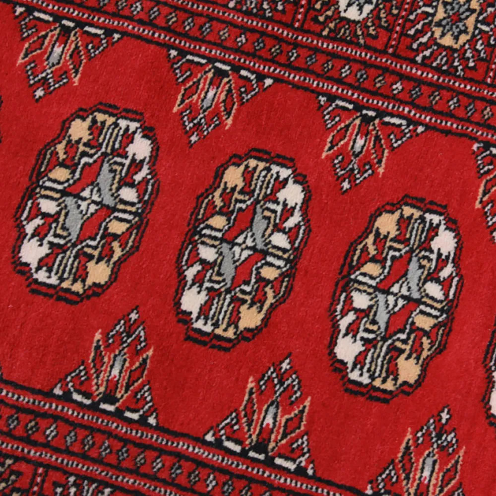 Le tapis pakistanais est fait dans les provinces du Pendjab et du Sindh. Reflet d'une tradition séculaire, ce tapis Oriental est un hommage au savoir-faire et à l'art des artisans. Les tapis pakistanais sont réputés dans le monde entier pour leur qualité et sont porteurs du riche héritage culturel du Pakistan. Les techniques de conception et de fabrication de ce tapis Oriental proviennent du peuple Turkmène, qui les échangeait sur le vieux marché aux tapis de la célèbre ville de Boukhara. L'un des motifs les plus célèbres (Boukhara) tire son nom de cette ville et constitue depuis lors l'une des caractéristiques de ces magnifiques tapis Oriental. Les tapis pakistanais sont faits de laine mérinos de Nouvelle-Zélande, ce qui leur confère une qualité et une durabilité exceptionnelles. Grâce à leur nouage dense, ils sont durables et résistants à l'usure et aux déchirures dues à l'usage quotidien. Cet élégant tapis est aujourd'hui considéré comme l'un des plus beaux tapis en laine du Pakistan. Après avoir été fait et tondu, le tapis est lavé quatre fois, puis soigneusement séché pour conserver ses couleurs éclatantes et sa solidité. Avec leurs motifs géométriques et leurs couleurs élégantes, ils ajoutent une ambiance unique à votre intérieur, qu'il s'agisse d'un tapis de salon pour rehausser l'élégance de la pièce ou d'un tapis de chambre à coucher qui ajoute confort et douceur à vos pas. Le tapis coureur pakistanais est également un choix idéal pour les couloirs. Si vous êtes à la recherche d'un tapis Oriental unique, fait de matériaux de qualité et témoignant d'un savoir-faire artistique, les tapis en laine pakistanais sont le choix idéal. La combinaison harmonieuse de motifs sophistiqués et de couleurs vives créera une atmosphère magique dans n'importe quelle pièce. Un tapis pakistanais n'est pas seulement esthétique, il est aussi extrêmement pratique. Sa surface densément nouée est durable et résistante, ce qui lui permet de rester en bon état pendant de nombreuses années. En outre, les propriétés naturelles de la laine lui permettent d'isoler le sol, ce qui lui confère d'excellentes propriétés d'isolation thermique. Les tapis pakistanais sont disponibles dans une large gamme de tailles et de formes, afin que chacun puisse trouver celui qui convient le mieux à sa maison.