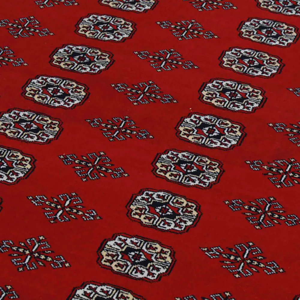 Le tapis pakistanais est fait dans les provinces du Pendjab et du Sindh. Reflet d'une tradition séculaire, ce tapis Oriental est un hommage au savoir-faire et à l'art des artisans. Les tapis pakistanais sont réputés dans le monde entier pour leur qualité et sont porteurs du riche héritage culturel du Pakistan. Les techniques de conception et de fabrication de ce tapis Oriental proviennent du peuple Turkmène, qui les échangeait sur le vieux marché aux tapis de la célèbre ville de Boukhara. L'un des motifs les plus célèbres (Boukhara) tire son nom de cette ville et constitue depuis lors l'une des caractéristiques de ces magnifiques tapis Oriental. Les tapis pakistanais sont faits de laine mérinos de Nouvelle-Zélande, ce qui leur confère une qualité et une durabilité exceptionnelles. Grâce à leur nouage dense, ils sont durables et résistants à l'usure et aux déchirures dues à l'usage quotidien. Cet élégant tapis est aujourd'hui considéré comme l'un des plus beaux tapis en laine du Pakistan. Après avoir été fait et tondu, le tapis est lavé quatre fois, puis soigneusement séché pour conserver ses couleurs éclatantes et sa solidité. Avec leurs motifs géométriques et leurs couleurs élégantes, ils ajoutent une ambiance unique à votre intérieur, qu'il s'agisse d'un tapis de salon pour rehausser l'élégance de la pièce ou d'un tapis de chambre à coucher qui ajoute confort et douceur à vos pas. Le tapis coureur pakistanais est également un choix idéal pour les couloirs. Si vous êtes à la recherche d'un tapis Oriental unique, fait de matériaux de qualité et témoignant d'un savoir-faire artistique, les tapis en laine pakistanais sont le choix idéal. La combinaison harmonieuse de motifs sophistiqués et de couleurs vives créera une atmosphère magique dans n'importe quelle pièce. Un tapis pakistanais n'est pas seulement esthétique, il est aussi extrêmement pratique. Sa surface densément nouée est durable et résistante, ce qui lui permet de rester en bon état pendant de nombreuses années. En outre, les propriétés naturelles de la laine lui permettent d'isoler le sol, ce qui lui confère d'excellentes propriétés d'isolation thermique. Les tapis pakistanais sont disponibles dans une large gamme de tailles et de formes, afin que chacun puisse trouver celui qui convient le mieux à sa maison.
