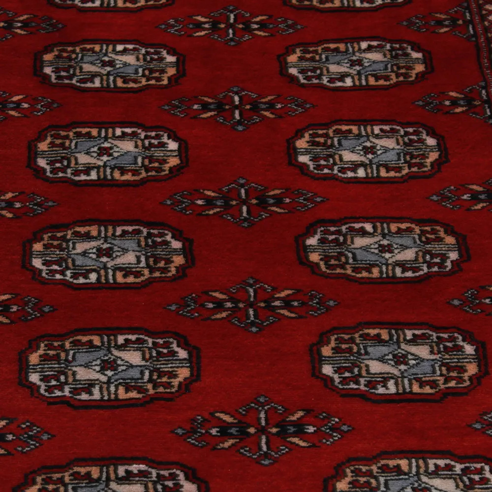 Le tapis pakistanais est fait dans les provinces du Pendjab et du Sindh. Reflet d'une tradition séculaire, ce tapis Oriental est un hommage au savoir-faire et à l'art des artisans. Les tapis pakistanais sont réputés dans le monde entier pour leur qualité et sont porteurs du riche héritage culturel du Pakistan. Les techniques de conception et de fabrication de ce tapis Oriental proviennent du peuple Turkmène, qui les échangeait sur le vieux marché aux tapis de la célèbre ville de Boukhara. L'un des motifs les plus célèbres (Boukhara) tire son nom de cette ville et constitue depuis lors l'une des caractéristiques de ces magnifiques tapis Oriental. Les tapis pakistanais sont faits de laine mérinos de Nouvelle-Zélande, ce qui leur confère une qualité et une durabilité exceptionnelles. Grâce à leur nouage dense, ils sont durables et résistants à l'usure et aux déchirures dues à l'usage quotidien. Cet élégant tapis est aujourd'hui considéré comme l'un des plus beaux tapis en laine du Pakistan. Après avoir été fait et tondu, le tapis est lavé quatre fois, puis soigneusement séché pour conserver ses couleurs éclatantes et sa solidité. Avec leurs motifs géométriques et leurs couleurs élégantes, ils ajoutent une ambiance unique à votre intérieur, qu'il s'agisse d'un tapis de salon pour rehausser l'élégance de la pièce ou d'un tapis de chambre à coucher qui ajoute confort et douceur à vos pas. Le tapis coureur pakistanais est également un choix idéal pour les couloirs. Si vous êtes à la recherche d'un tapis Oriental unique, fait de matériaux de qualité et témoignant d'un savoir-faire artistique, les tapis en laine pakistanais sont le choix idéal. La combinaison harmonieuse de motifs sophistiqués et de couleurs vives créera une atmosphère magique dans n'importe quelle pièce. Un tapis pakistanais n'est pas seulement esthétique, il est aussi extrêmement pratique. Sa surface densément nouée est durable et résistante, ce qui lui permet de rester en bon état pendant de nombreuses années. En outre, les propriétés naturelles de la laine lui permettent d'isoler le sol, ce qui lui confère d'excellentes propriétés d'isolation thermique. Les tapis pakistanais sont disponibles dans une large gamme de tailles et de formes, afin que chacun puisse trouver celui qui convient le mieux à sa maison.