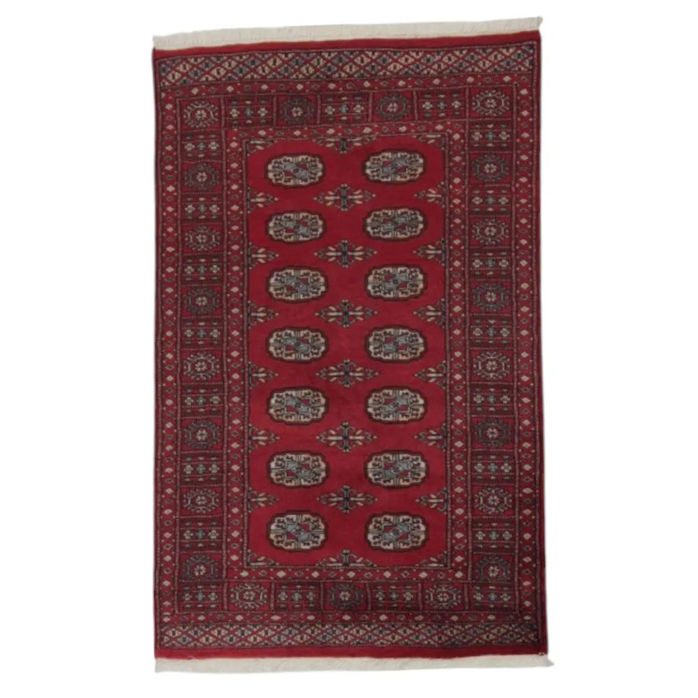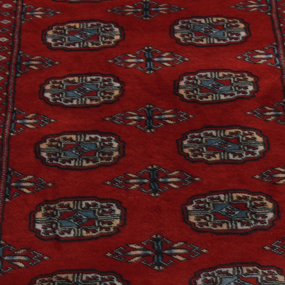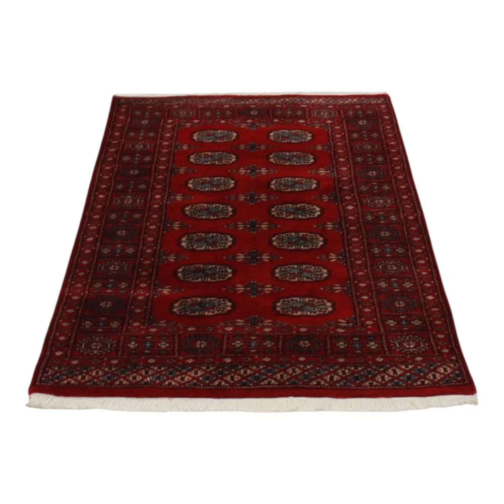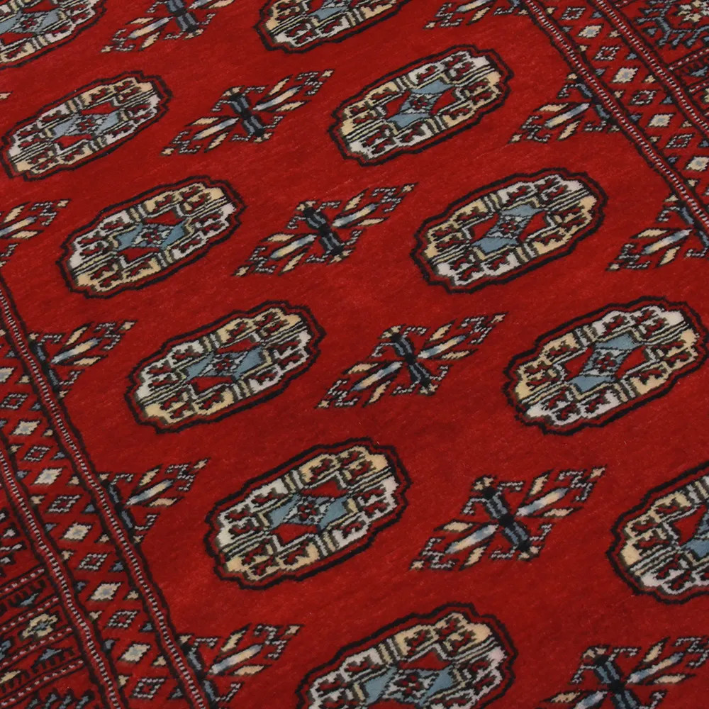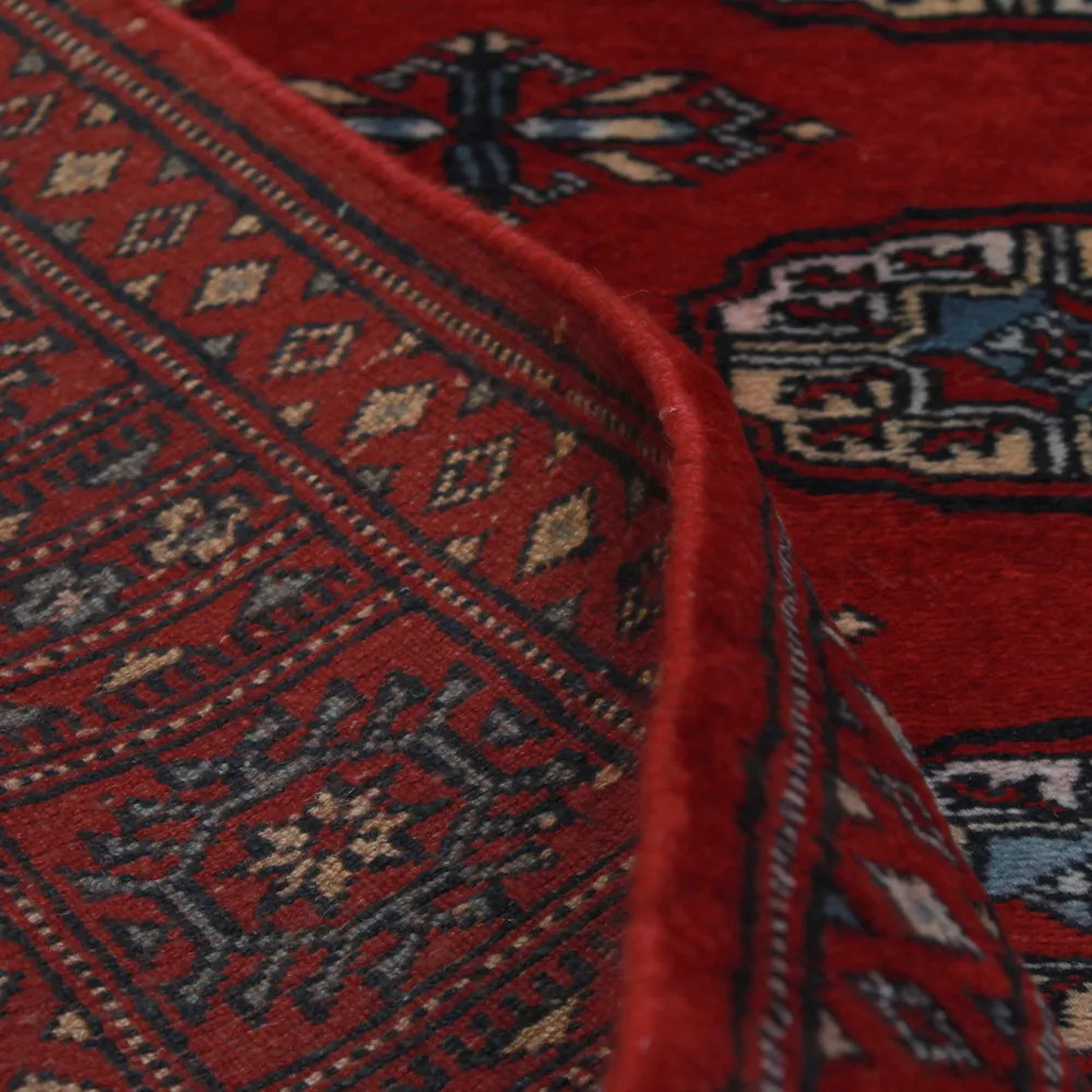 Le tapis pakistanais est fait dans les provinces du Pendjab et du Sindh. Reflet d'une tradition séculaire, ce tapis Oriental est un hommage au savoir-faire et à l'art des artisans. Les tapis pakistanais sont réputés dans le monde entier pour leur qualité et sont porteurs du riche héritage culturel du Pakistan. Les techniques de conception et de fabrication de ce tapis Oriental proviennent du peuple Turkmène, qui les échangeait sur le vieux marché aux tapis de la célèbre ville de Boukhara. L'un des motifs les plus célèbres (Boukhara) tire son nom de cette ville et constitue depuis lors l'une des caractéristiques de ces magnifiques tapis Oriental. Les tapis pakistanais sont faits de laine mérinos de Nouvelle-Zélande, ce qui leur confère une qualité et une durabilité exceptionnelles. Grâce à leur nouage dense, ils sont durables et résistants à l'usure et aux déchirures dues à l'usage quotidien. Cet élégant tapis est aujourd'hui considéré comme l'un des plus beaux tapis en laine du Pakistan. Après avoir été fait et tondu, le tapis est lavé quatre fois, puis soigneusement séché pour conserver ses couleurs éclatantes et sa solidité. Avec leurs motifs géométriques et leurs couleurs élégantes, ils ajoutent une ambiance unique à votre intérieur, qu'il s'agisse d'un tapis de salon pour rehausser l'élégance de la pièce ou d'un tapis de chambre à coucher qui ajoute confort et douceur à vos pas. Le tapis coureur pakistanais est également un choix idéal pour les couloirs. Si vous êtes à la recherche d'un tapis Oriental unique, fait de matériaux de qualité et témoignant d'un savoir-faire artistique, les tapis en laine pakistanais sont le choix idéal. La combinaison harmonieuse de motifs sophistiqués et de couleurs vives créera une atmosphère magique dans n'importe quelle pièce. Un tapis pakistanais n'est pas seulement esthétique, il est aussi extrêmement pratique. Sa surface densément nouée est durable et résistante, ce qui lui permet de rester en bon état pendant de nombreuses années. En outre, les propriétés naturelles de la laine lui permettent d'isoler le sol, ce qui lui confère d'excellentes propriétés d'isolation thermique. Les tapis pakistanais sont disponibles dans une large gamme de tailles et de formes, afin que chacun puisse trouver celui qui convient le mieux à sa maison.