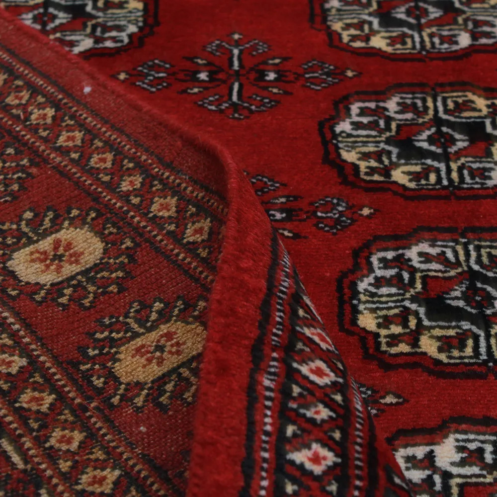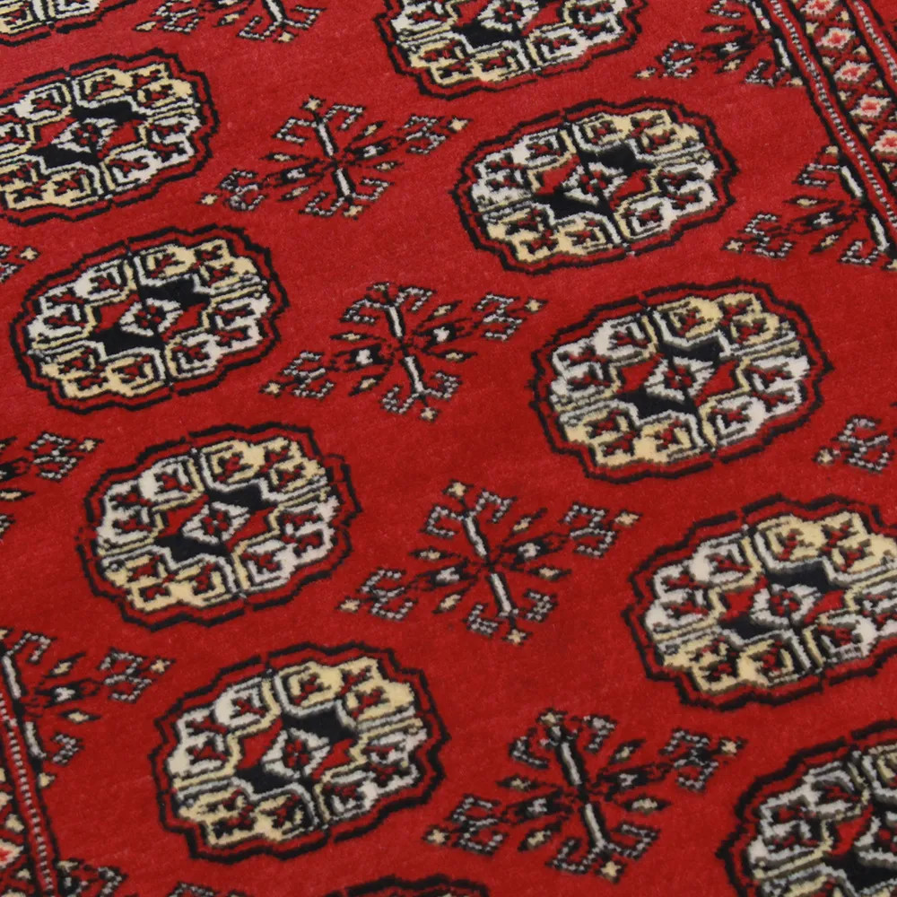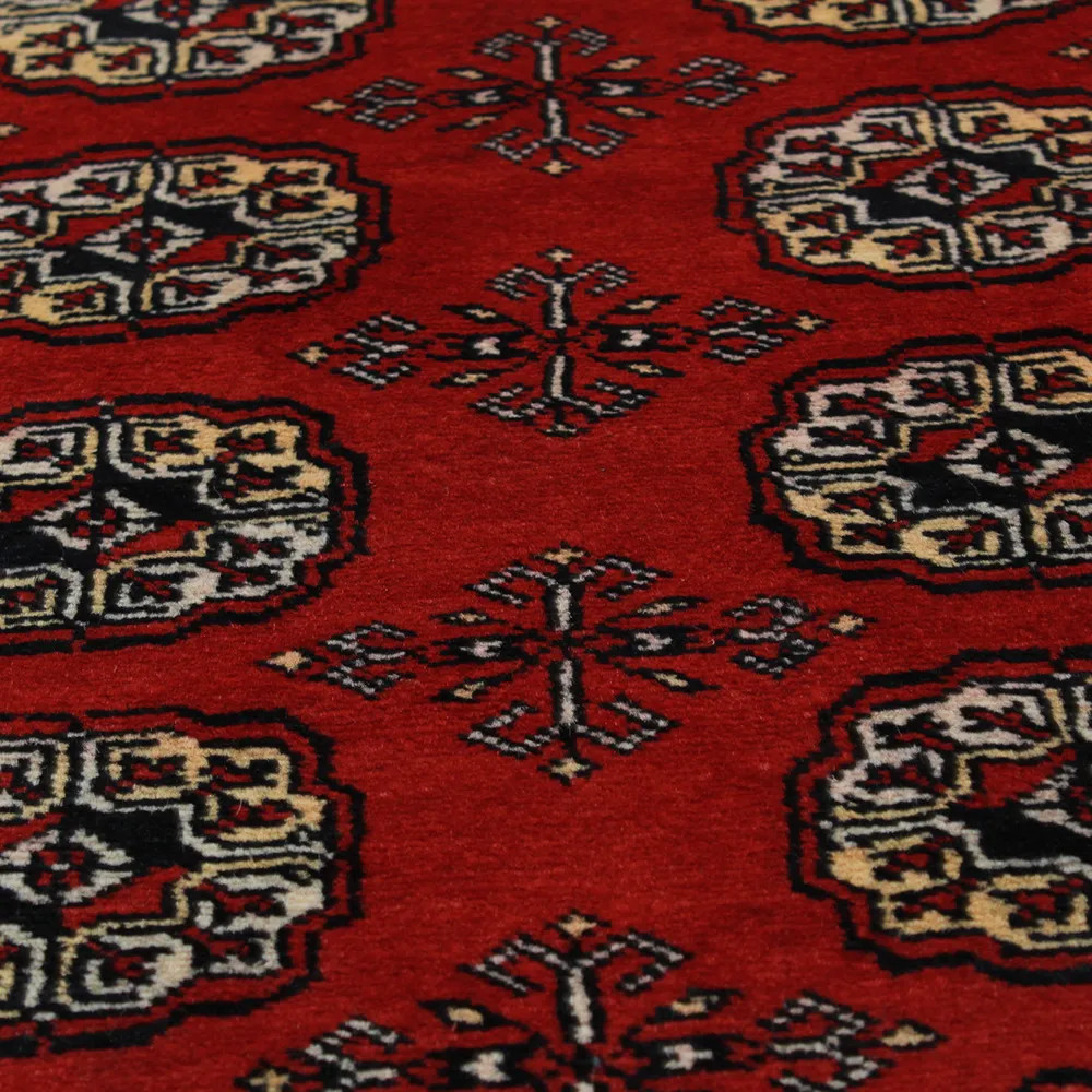 Le tapis pakistanais est fait dans les provinces du Pendjab et du Sindh. Reflet d'une tradition séculaire, ce tapis Oriental est un hommage au savoir-faire et à l'art des artisans. Les tapis pakistanais sont réputés dans le monde entier pour leur qualité et sont porteurs du riche héritage culturel du Pakistan. Les techniques de conception et de fabrication de ce tapis Oriental proviennent du peuple Turkmène, qui les échangeait sur le vieux marché aux tapis de la célèbre ville de Boukhara. L'un des motifs les plus célèbres (Boukhara) tire son nom de cette ville et constitue depuis lors l'une des caractéristiques de ces magnifiques tapis Oriental. Les tapis pakistanais sont faits de laine mérinos de Nouvelle-Zélande, ce qui leur confère une qualité et une durabilité exceptionnelles. Grâce à leur nouage dense, ils sont durables et résistants à l'usure et aux déchirures dues à l'usage quotidien. Cet élégant tapis est aujourd'hui considéré comme l'un des plus beaux tapis en laine du Pakistan. Après avoir été fait et tondu, le tapis est lavé quatre fois, puis soigneusement séché pour conserver ses couleurs éclatantes et sa solidité. Avec leurs motifs géométriques et leurs couleurs élégantes, ils ajoutent une ambiance unique à votre intérieur, qu'il s'agisse d'un tapis de salon pour rehausser l'élégance de la pièce ou d'un tapis de chambre à coucher qui ajoute confort et douceur à vos pas. Le tapis coureur pakistanais est également un choix idéal pour les couloirs. Si vous êtes à la recherche d'un tapis Oriental unique, fait de matériaux de qualité et témoignant d'un savoir-faire artistique, les tapis en laine pakistanais sont le choix idéal. La combinaison harmonieuse de motifs sophistiqués et de couleurs vives créera une atmosphère magique dans n'importe quelle pièce. Un tapis pakistanais n'est pas seulement esthétique, il est aussi extrêmement pratique. Sa surface densément nouée est durable et résistante, ce qui lui permet de rester en bon état pendant de nombreuses années. En outre, les propriétés naturelles de la laine lui permettent d'isoler le sol, ce qui lui confère d'excellentes propriétés d'isolation thermique. Les tapis pakistanais sont disponibles dans une large gamme de tailles et de formes, afin que chacun puisse trouver celui qui convient le mieux à sa maison.