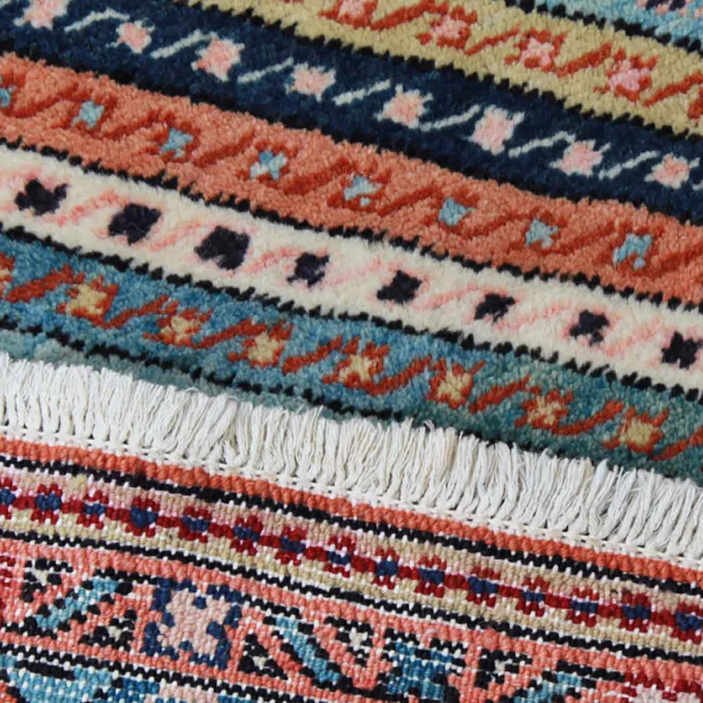 L'histoire du tapis iranien a évolué et s'est améliorée au fil des siècles. Les tapis faits à la main ont toujours fait partie intégrante de la culture et de l'identité persanes, et les techniques de nouage ont été transmises de génération en génération. Sous l'empire sassanide (224 - 651 après J.-C.), le tissage des tapis est devenu un véritable art, et les plus belles pièces étaient utilisées dans les cours royales, les palais et les mosquées de l'empire. Pendant la période de la conquête islamique et du califat (à partir du VIIe siècle), les tapis persans ont trouvé une nouvelle inspiration dans les influences artistiques arabes. Les motifs décoratifs islamiques, les formes géométriques et la calligraphie apparaissent dans les dessins des tapis et enrichissent l'univers visuel des tapis persans faits main. Sous la dynastie safavide (1501-1736), le tissage des tapis persans a atteint de nouveaux sommets. Au cours de cette période, un système de production de tapis a été mis en place et s'est étendu à tous les coins de l'empire. La ville d'Ispahan est devenue le centre de la fabrication de tapis, et les tapis persans de cette période étaient réputés dans le monde entier pour leurs motifs détaillés, leurs techniques sophistiquées et leur grande qualité.