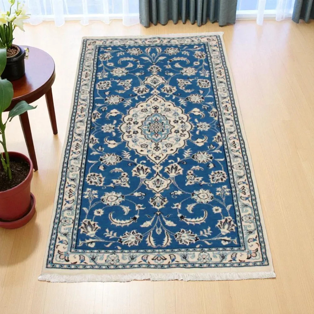 Le tapis Nain n'est pas un simple tapis persan, c'est l'incarnation même de l'artisanat et de l'art intemporel. Ce tapis iranien est fait dans la région centrale de l'Iran, dans la ville du même nom, Nain, où le tissage de tapis est une tradition relativement récente. Malgré cela, le tapis persan Nain est aujourd'hui l'un des tapis iraniens les plus connus et les plus recherchés sur le marché mondial. La production du tapis Nain a commencé au début du 20e siècle et, en peu de temps, il a acquis une grande réputation. Bien que la ville ait été auparavant plus connue pour sa fabrication d'étoffes et de textiles fins, les techniques de fabrication des tapis ont rapidement évolué et sont devenues plus sophistiquées. Le tapis Nain est fabriqué à la main à partir de laine soigneusement sélectionnée. L'excellente utilisation des matériaux garantit la douceur et la brillance élégante du tapis. Le nombre de nœuds du tapis est d'environ 200 000 à 350 000 nœuds par mètre carré. Les tapis Nain sont de véritables œuvres d'art, car chaque pièce est fabriquée à la main et chaque nœud est travaillé avec précision. Les motifs caractéristiques du tapis Nain comprennent des formes géométriques, des fleurs et des arabesques disposées symétriquement autour d'un médaillon central. Cet élément de conception peut être considéré comme l'un des principaux symboles de l'art islamique, faisant référence à l'équilibre et à l'harmonie. Le tapis Nain séduit non seulement par ses motifs sophistiqués, mais aussi par ses couleurs pastel, qui comprennent des tons bleu clair, crème et beige. Cette palette de couleurs discrètes mais élégantes permet au tapis de s'accorder avec n'importe quel intérieur, qu'il soit moderne ou classique. Le tapis Nain est un élément décoratif qui peut égayer n'importe quelle pièce, en apportant élégance et sophistication à l'espace. Un tapis iranien dans le salon n'est pas seulement un élément décoratif, mais aussi un investissement à long terme. Les authentiques tapis persans faits à la main se vendent à un prix nettement supérieur à la moyenne des tapis, car chaque pièce est unique et spéciale. La valeur de ces tapis ne fait qu'augmenter avec le temps, de sorte qu'un tapis Nain fait à la main peut même être transmis comme un héritage familial. Un tapis Nain est un parfait exemple de l'artisanat iranien, transmis de génération en génération. Chaque tapis porte les meilleures traditions du tissage des tapis persans, ce qui en fait non seulement un objet fonctionnel mais aussi une œuvre de valeur artistique. Un tapis iranien dans le salon peut changer l'atmosphère d'une pièce, rayonnant de chaleur et d'élégance. L'achat d'un tapis persan fait main est un investissement à vie qui non seulement rehaussera la beauté de votre salon, mais apportera aussi un morceau de la tradition artisanale iranienne. Si vous recherchez un tapis intemporel, de haute qualité et luxueux pour votre salon ou votre chambre à coucher, un tapis Nain est le meilleur choix.