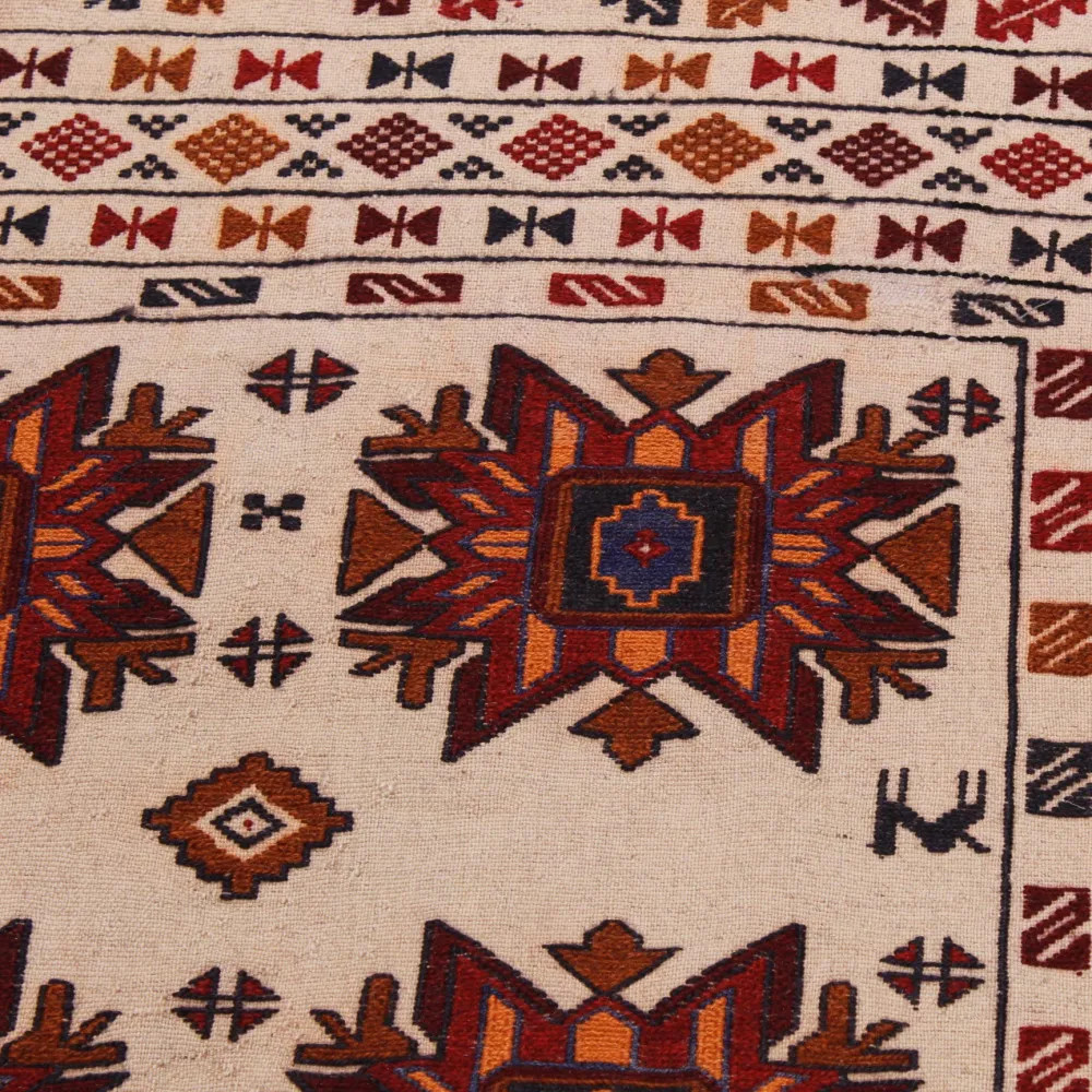 Les tapis Kilim tribal afghan produits en Afghanistan se distinguent des tapis Kilim tissés à la main. Cette tradition unique de fabrication de tapis nomades a ses racines en Afghanistan et reflète le riche héritage culturel des tribus nomades. Aujourd'hui, des ateliers situés dans la ville de Herat, en Afghanistan, produisent ces chefs-d'œuvre, également connus sous le nom de tapis Herati Beluch. Le tapis tribal Kilim est un véritable chef-d'œuvre, fait par des artisans et des tisseurs de tapis locaux. La ville de Herat est célèbre en Afghanistan pour son tissage traditionnel de tapis faits main, qui a une longue et riche histoire remontant à plusieurs siècles. Les habitants d'Herat sont restés fidèles à la technique traditionnelle de tissage de tapis, même aujourd'hui. Les techniques de tissage intemporelles et les connaissances transmises de génération en génération se retrouvent dans la fabrication des kilims tribaux. Les qualités distinctives et les décorations du tapis Kilim afghan sont impressionnantes. Ils sont dominés par des motifs géométriques ou animaliers qui reflètent le design traditionnel afghan et les traditions nomades. Le tapis Kilim tribal est donc non seulement captivant par sa beauté, mais aussi par son riche héritage culturel.