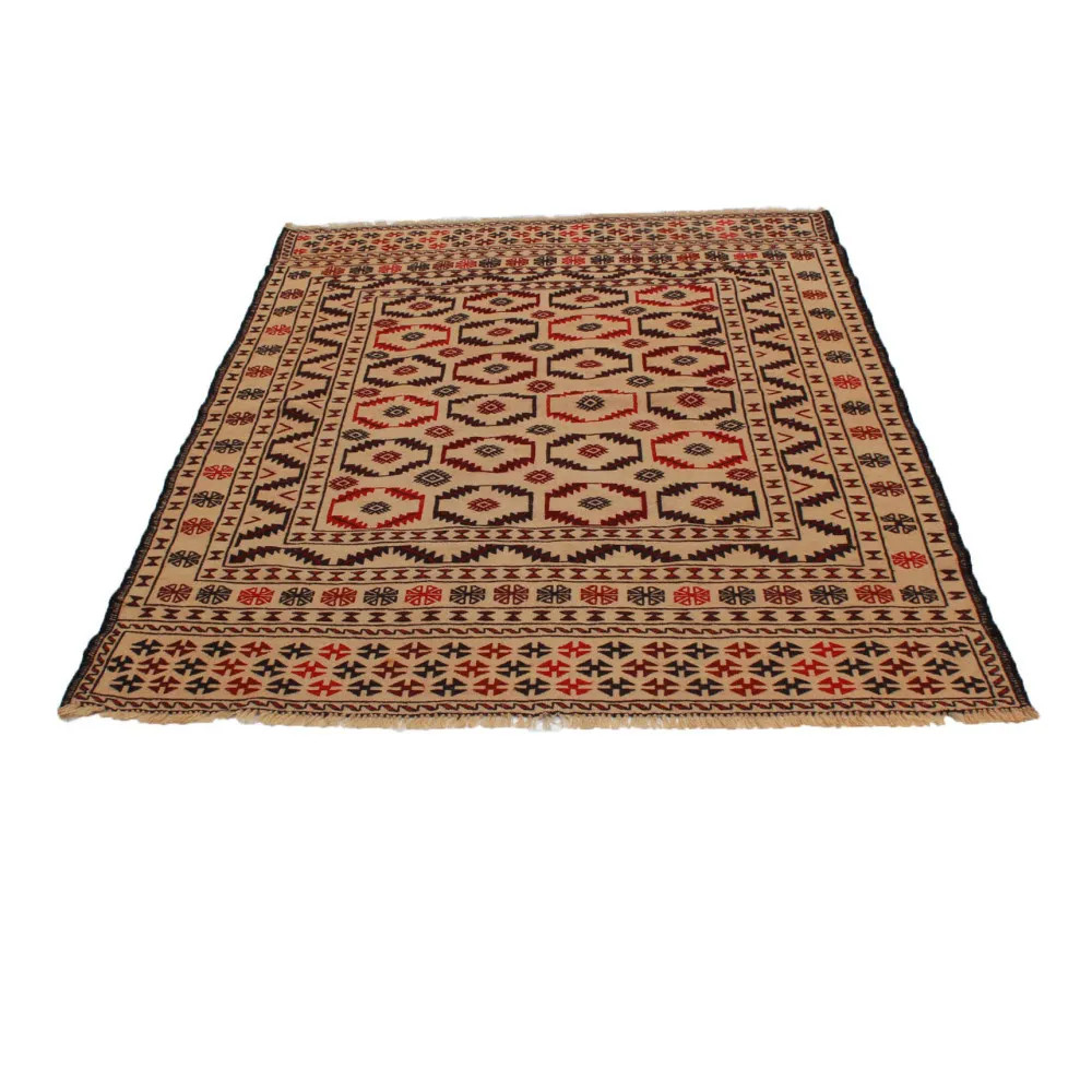 Les tapis Kilim tribal afghan produits en Afghanistan se distinguent des tapis Kilim tissés à la main. Cette tradition unique de fabrication de tapis nomades a ses racines en Afghanistan et reflète le riche héritage culturel des tribus nomades. Aujourd'hui, des ateliers situés dans la ville de Herat, en Afghanistan, produisent ces chefs-d'œuvre, également connus sous le nom de tapis Herati Beluch. Le tapis tribal Kilim est un véritable chef-d'œuvre, fait par des artisans et des tisseurs de tapis locaux. La ville de Herat est célèbre en Afghanistan pour son tissage traditionnel de tapis faits main, qui a une longue et riche histoire remontant à plusieurs siècles. Les habitants d'Herat sont restés fidèles à la technique traditionnelle de tissage de tapis, même aujourd'hui. Les techniques de tissage intemporelles et les connaissances transmises de génération en génération se retrouvent dans la fabrication des kilims tribaux. Les qualités distinctives et les décorations du tapis Kilim afghan sont impressionnantes. Ils sont dominés par des motifs géométriques ou animaliers qui reflètent le design traditionnel afghan et les traditions nomades. Le tapis Kilim tribal est donc non seulement captivant par sa beauté, mais aussi par son riche héritage culturel.