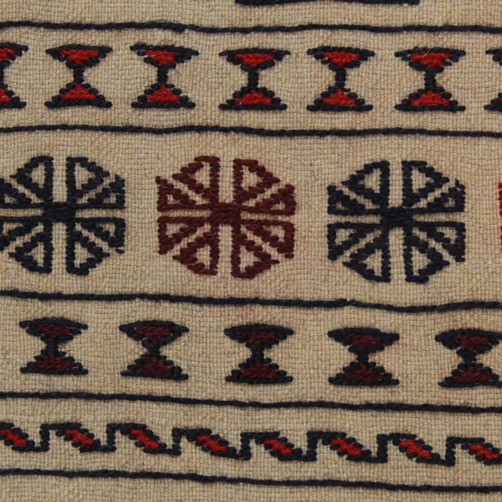 Le tapis nomade afghan kilim reflète l'héritage culturel de l'Afghanistan. Ces chefs-d'œuvre évoquent les traditions et l'art des tribus nomades. Avec leurs étonnants motifs antiques, ils constitueront une véritable pièce maîtresse dans votre maison, qu'ils soient étalés sur le sol ou accrochés au mur en tant que tapis mural. Chaque pièce du tapis tribal kilim tissé à la main est unique. Utilisé comme tapis mural, un tapis nomade kilim peut constituer un véritable élément de décoration sur n'importe quel mur de votre maison. Les motifs géométriques et animaliers contribuent à l'atmosphère unique et à la chaleur de votre maison. Le tapis nomade afghan raconte l'histoire du mode de vie des tribus et de leurs traditions. Un tapis mural nomade n'est pas seulement un objet décoratif, c'est aussi un objet artisanal précieux qui rapproche l'art et la culture tribale afghane de vous, directement à travers les murs de votre maison. Le tapis tribal kilim est fait de laine de haute qualité, ce qui garantit sa durabilité et sa facilité de nettoyage. Ce tapis nomade est le choix parfait si vous souhaitez créer une décoration intérieure unique et étonnante pour votre maison.