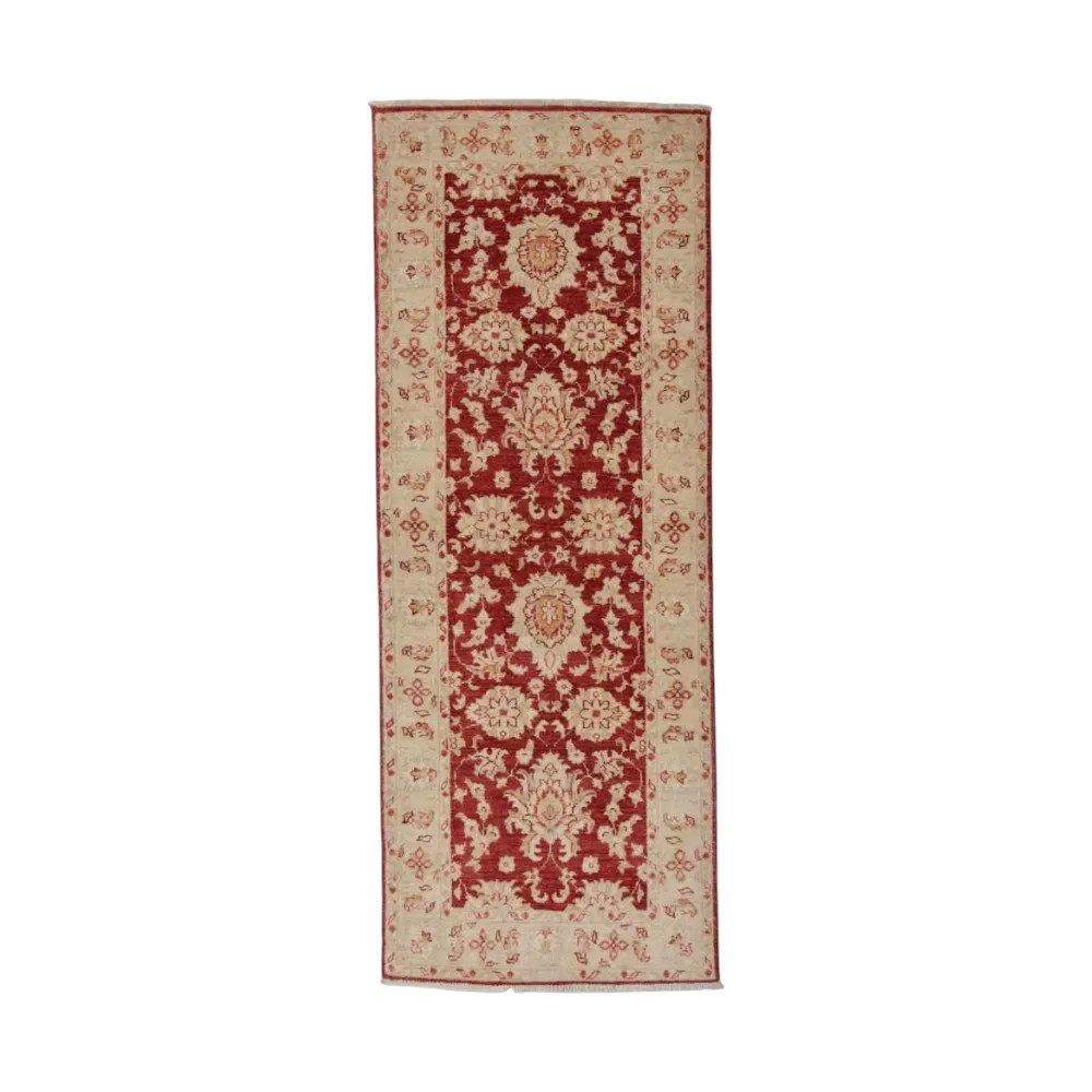 Le tapis Ziegler est très populaire, ses couleurs étant faites à partir de différents arbres. Une fois le tapis Ziegler fait, il est lavé quatre fois et séché au soleil. Leurs motifs s'inspirent des tapis anciens et sont souvent de couleur claire. Il s'agit d'un tapis Oriental très recherché, principalement parce qu'il convient parfaitement à la plupart des maisons, qu'elles soient décorées de façon minimaliste ou classique. La partie nouée du tapis Ziegler est faite à 100 % de laine de Ghazni. Ils sont faciles à entretenir et ne peluchent pas. De nombreuses personnes pensent que plus le tapis persan est épais, plus il est de qualité et durable. La durabilité dépend de la technique de nouage et de la qualité du matériau utilisé. Dans la plupart des cas, les tapis à longues fibres sont moins durables car l'aspirateur peut facilement s'engouffrer dans les fibres nouées. Il ajoute de l'élégance, que ce soit comme tapis de salon ou de chambre à coucher. En tant que tapis durable, il peut également être utilisé sous la table à manger. Nous avons également plusieurs longueurs de tapis coureurs Ziegler en stock.