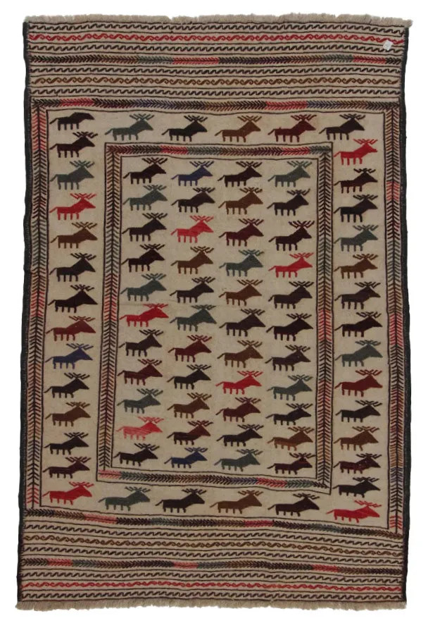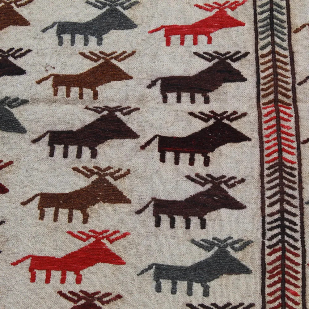 Les tapis Kilim tribal afghan produits en Afghanistan se distinguent des tapis Kilim tissés à la main. Cette tradition unique de fabrication de tapis nomades a ses racines en Afghanistan et reflète le riche héritage culturel des tribus nomades. Aujourd'hui, des ateliers situés dans la ville de Herat, en Afghanistan, produisent ces chefs-d'œuvre, également connus sous le nom de tapis Herati Beluch. Le tapis tribal Kilim est un véritable chef-d'œuvre, fait par des artisans et des tisseurs de tapis locaux. La ville de Herat est célèbre en Afghanistan pour son tissage traditionnel de tapis faits main, qui a une longue et riche histoire remontant à plusieurs siècles. Les habitants d'Herat sont restés fidèles à la technique traditionnelle de tissage de tapis, même aujourd'hui. Les techniques de tissage intemporelles et les connaissances transmises de génération en génération se retrouvent dans la fabrication des kilims tribaux. Les qualités distinctives et les décorations du tapis Kilim afghan sont impressionnantes. Ils sont dominés par des motifs géométriques ou animaliers qui reflètent le design traditionnel afghan et les traditions nomades. Le tapis Kilim tribal est donc non seulement captivant par sa beauté, mais aussi par son riche héritage culturel.
