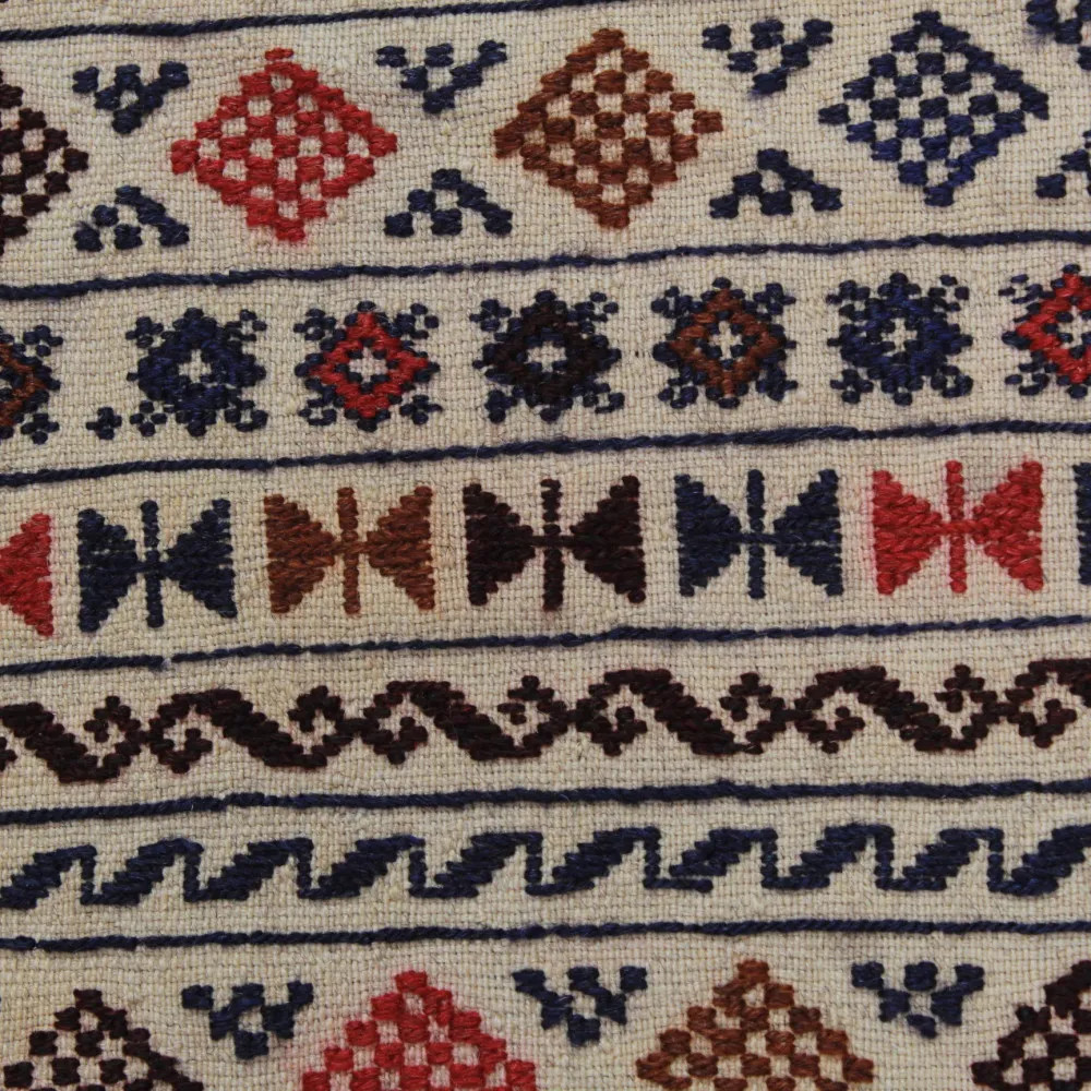 Le tapis nomade afghan kilim reflète l'héritage culturel de l'Afghanistan. Ces chefs-d'œuvre évoquent les traditions et l'art des tribus nomades. Avec leurs étonnants motifs antiques, ils constitueront une véritable pièce maîtresse dans votre maison, qu'ils soient étalés sur le sol ou accrochés au mur en tant que tapis mural. Chaque pièce du tapis tribal kilim tissé à la main est unique. Utilisé comme tapis mural, un tapis nomade kilim peut constituer un véritable élément de décoration sur n'importe quel mur de votre maison. Les motifs géométriques et animaliers contribuent à l'atmosphère unique et à la chaleur de votre maison. Le tapis nomade afghan raconte l'histoire du mode de vie des tribus et de leurs traditions. Un tapis mural nomade n'est pas seulement un objet décoratif, c'est aussi un objet artisanal précieux qui rapproche l'art et la culture tribale afghane de vous, directement à travers les murs de votre maison. Le tapis tribal kilim est fait de laine de haute qualité, ce qui garantit sa durabilité et sa facilité de nettoyage. Ce tapis nomade est le choix parfait si vous souhaitez créer une décoration intérieure unique et étonnante pour votre maison.
