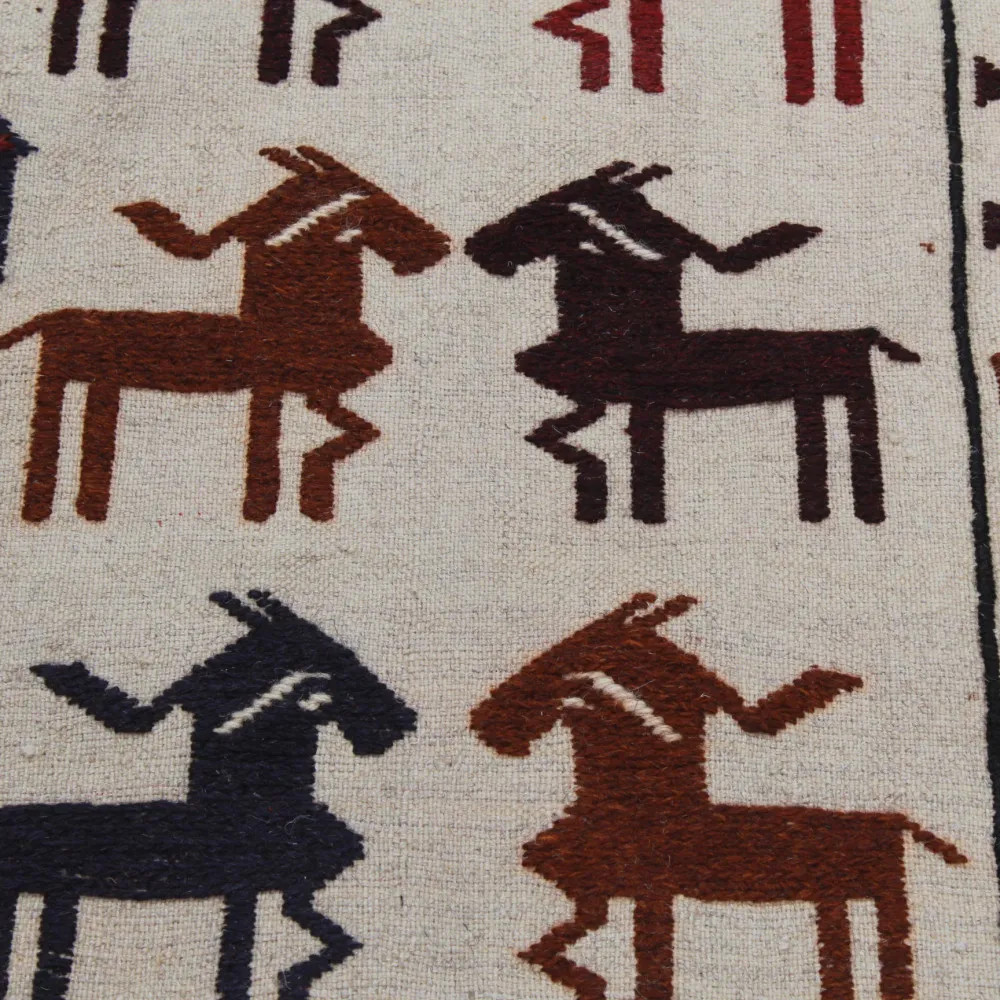 Les tapis Kilim tribal afghan produits en Afghanistan se distinguent des tapis Kilim tissés à la main. Cette tradition unique de fabrication de tapis nomades a ses racines en Afghanistan et reflète le riche héritage culturel des tribus nomades. Aujourd'hui, des ateliers situés dans la ville de Herat, en Afghanistan, produisent ces chefs-d'œuvre, également connus sous le nom de tapis Herati Beluch. Le tapis tribal Kilim est un véritable chef-d'œuvre, fait par des artisans et des tisseurs de tapis locaux. La ville de Herat est célèbre en Afghanistan pour son tissage traditionnel de tapis faits main, qui a une longue et riche histoire remontant à plusieurs siècles. Les habitants d'Herat sont restés fidèles à la technique traditionnelle de tissage de tapis, même aujourd'hui. Les techniques de tissage intemporelles et les connaissances transmises de génération en génération se retrouvent dans la fabrication des kilims tribaux. Les qualités distinctives et les décorations du tapis Kilim afghan sont impressionnantes. Ils sont dominés par des motifs géométriques ou animaliers qui reflètent le design traditionnel afghan et les traditions nomades. Le tapis Kilim tribal est donc non seulement captivant par sa beauté, mais aussi par son riche héritage culturel.