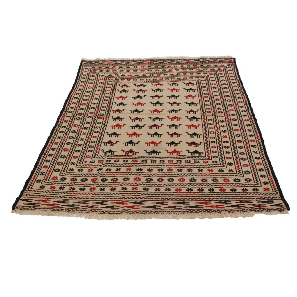 Les tapis Kilim tribal afghan produits en Afghanistan se distinguent des tapis Kilim tissés à la main. Cette tradition unique de fabrication de tapis nomades a ses racines en Afghanistan et reflète le riche héritage culturel des tribus nomades. Aujourd'hui, des ateliers situés dans la ville de Herat, en Afghanistan, produisent ces chefs-d'œuvre, également connus sous le nom de tapis Herati Beluch. Le tapis tribal Kilim est un véritable chef-d'œuvre, fait par des artisans et des tisseurs de tapis locaux. La ville de Herat est célèbre en Afghanistan pour son tissage traditionnel de tapis faits main, qui a une longue et riche histoire remontant à plusieurs siècles. Les habitants d'Herat sont restés fidèles à la technique traditionnelle de tissage de tapis, même aujourd'hui. Les techniques de tissage intemporelles et les connaissances transmises de génération en génération se retrouvent dans la fabrication des kilims tribaux. Les qualités distinctives et les décorations du tapis Kilim afghan sont impressionnantes. Ils sont dominés par des motifs géométriques ou animaliers qui reflètent le design traditionnel afghan et les traditions nomades. Le tapis Kilim tribal est donc non seulement captivant par sa beauté, mais aussi par son riche héritage culturel.