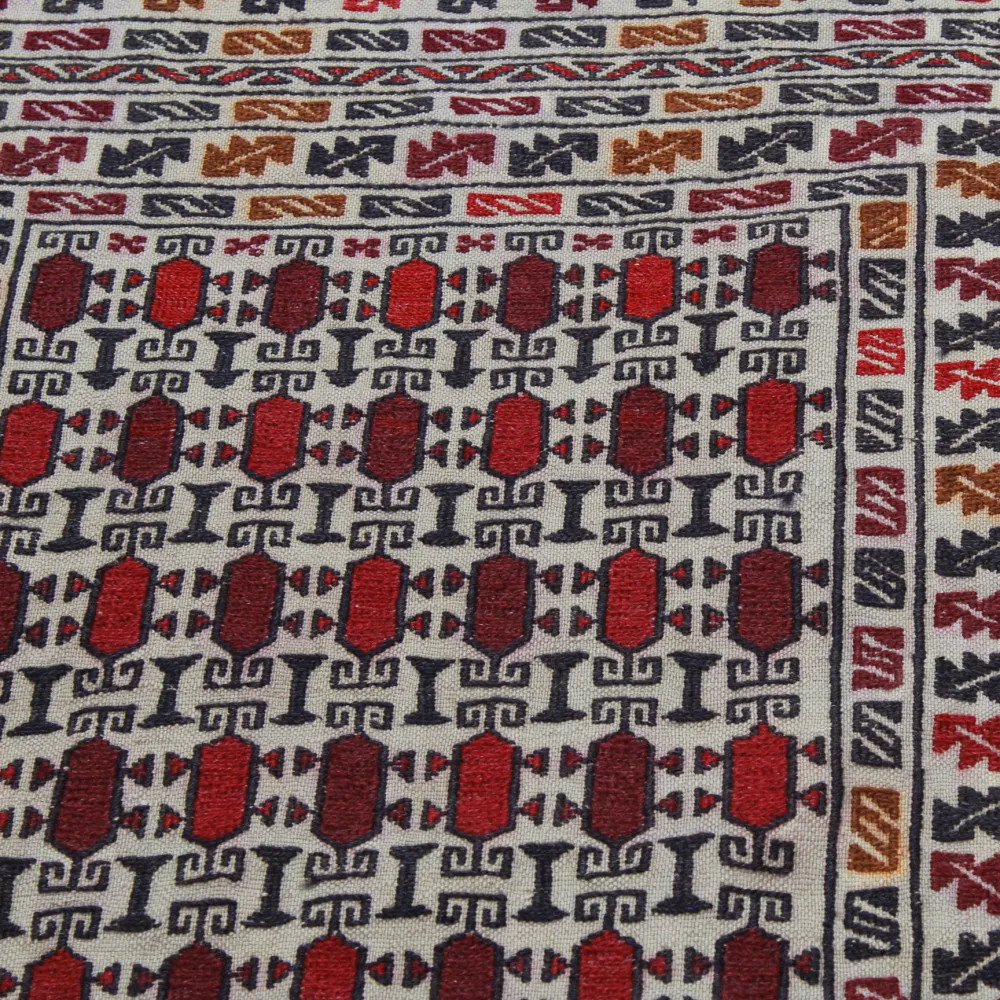 Le nettoyage d'un tapis tribal Kilim n'est pas une tâche difficile. Les petites taches peuvent être facilement éliminées à l'aide d'un chiffon légèrement humide ou d'un produit nettoyant pour tapis disponible dans le commerce et adapté au nettoyage de la laine. Cependant, si la tache est importante, nous vous recommandons de faire appel aux services d'une entreprise professionnelle de nettoyage de tapis. Le tapis Tribal Kilim doit être nettoyé avec l'aspirateur réglé sur le niveau le plus bas. Le tapis Tribal Kilim ne retient pas la poussière. La tradition séculaire veut que l'on suspende le tapis Kilim et qu'on le batte avec un bâton de dépoussiérage, mais cette pratique n'est en fait pas recommandée car elle risque d'endommager le tissage du Kilim. Faites attention aux mites même si vous utilisez votre kilim nomade comme tapis mural, car elles peuvent l'endommager.