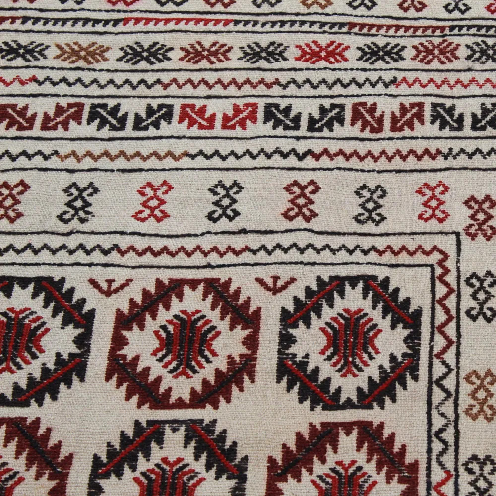 Les tapis Kilim tribal afghan produits en Afghanistan se distinguent des tapis Kilim tissés à la main. Cette tradition unique de fabrication de tapis nomades a ses racines en Afghanistan et reflète le riche héritage culturel des tribus nomades. Aujourd'hui, des ateliers situés dans la ville de Herat, en Afghanistan, produisent ces chefs-d'œuvre, également connus sous le nom de tapis Herati Beluch. Le tapis tribal Kilim est un véritable chef-d'œuvre, fait par des artisans et des tisseurs de tapis locaux. La ville de Herat est célèbre en Afghanistan pour son tissage traditionnel de tapis faits main, qui a une longue et riche histoire remontant à plusieurs siècles. Les habitants d'Herat sont restés fidèles à la technique traditionnelle de tissage de tapis, même aujourd'hui. Les techniques de tissage intemporelles et les connaissances transmises de génération en génération se retrouvent dans la fabrication des kilims tribaux. Les qualités distinctives et les décorations du tapis Kilim afghan sont impressionnantes. Ils sont dominés par des motifs géométriques ou animaliers qui reflètent le design traditionnel afghan et les traditions nomades. Le tapis Kilim tribal est donc non seulement captivant par sa beauté, mais aussi par son riche héritage culturel.