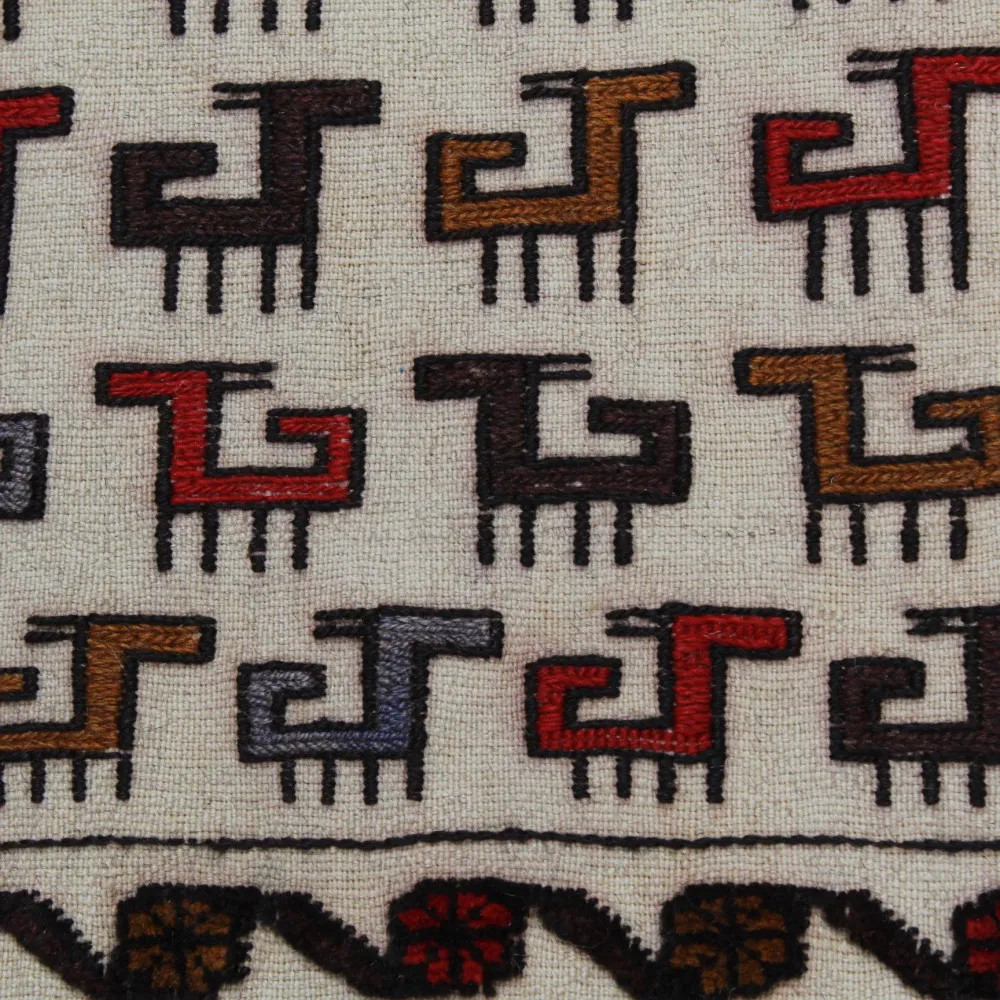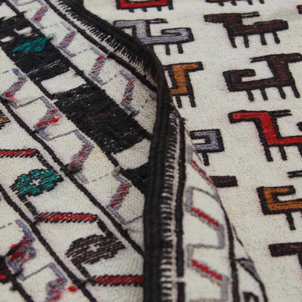 Le tapis nomade afghan kilim reflète l'héritage culturel de l'Afghanistan. Ces chefs-d'œuvre évoquent les traditions et l'art des tribus nomades. Avec leurs étonnants motifs antiques, ils constitueront une véritable pièce maîtresse dans votre maison, qu'ils soient étalés sur le sol ou accrochés au mur en tant que tapis mural. Chaque pièce du tapis tribal kilim tissé à la main est unique. Utilisé comme tapis mural, un tapis nomade kilim peut constituer un véritable élément de décoration sur n'importe quel mur de votre maison. Les motifs géométriques et animaliers contribuent à l'atmosphère unique et à la chaleur de votre maison. Le tapis nomade afghan raconte l'histoire du mode de vie des tribus et de leurs traditions. Un tapis mural nomade n'est pas seulement un objet décoratif, c'est aussi un objet artisanal précieux qui rapproche l'art et la culture tribale afghane de vous, directement à travers les murs de votre maison. Le tapis tribal kilim est fait de laine de haute qualité, ce qui garantit sa durabilité et sa facilité de nettoyage. Ce tapis nomade est le choix parfait si vous souhaitez créer une décoration intérieure unique et étonnante pour votre maison.