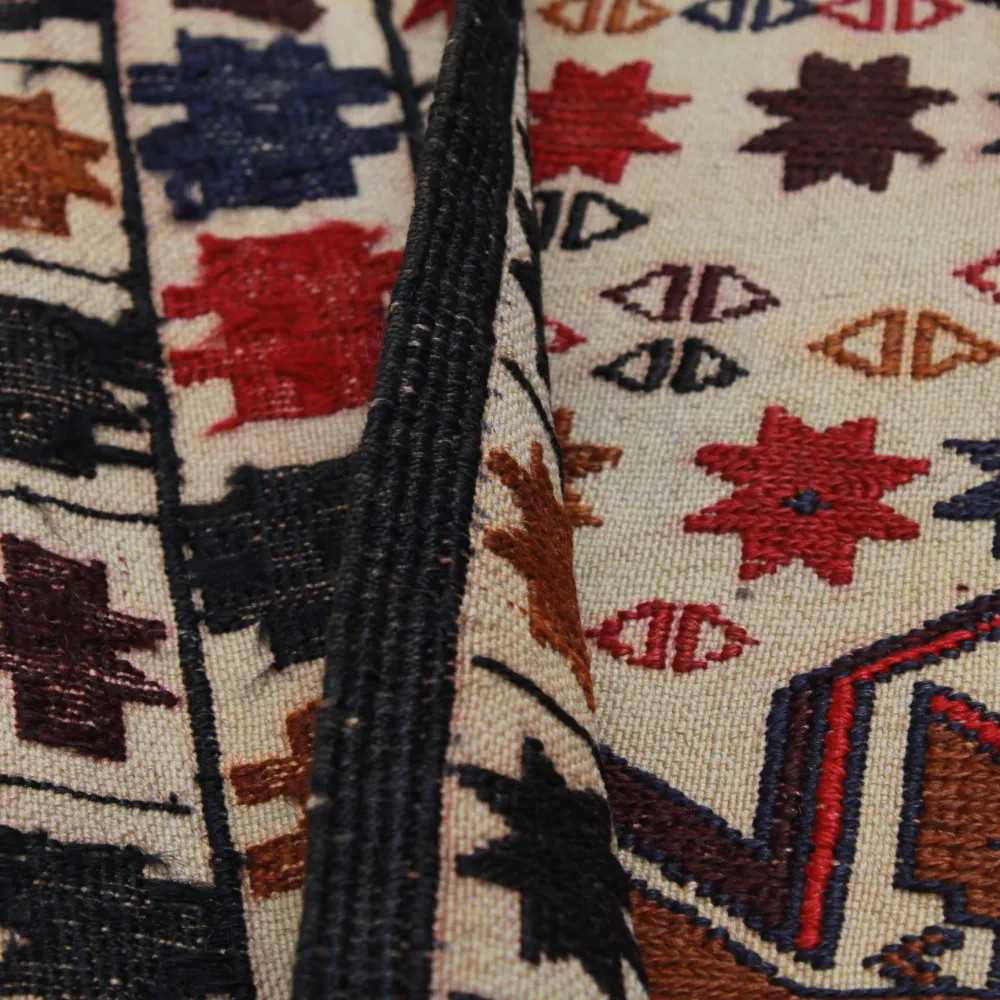 Le nettoyage d'un tapis tribal Kilim n'est pas une tâche difficile. Les petites taches peuvent être facilement éliminées à l'aide d'un chiffon légèrement humide ou d'un produit nettoyant pour tapis disponible dans le commerce et adapté au nettoyage de la laine. Cependant, si la tache est importante, nous vous recommandons de faire appel aux services d'une entreprise professionnelle de nettoyage de tapis. Le tapis Tribal Kilim doit être nettoyé avec l'aspirateur réglé sur le niveau le plus bas. Le tapis Tribal Kilim ne retient pas la poussière. La tradition séculaire veut que l'on suspende le tapis Kilim et qu'on le batte avec un bâton de dépoussiérage, mais cette pratique n'est en fait pas recommandée car elle risque d'endommager le tissage du Kilim. Faites attention aux mites même si vous utilisez votre kilim nomade comme tapis mural, car elles peuvent l'endommager.