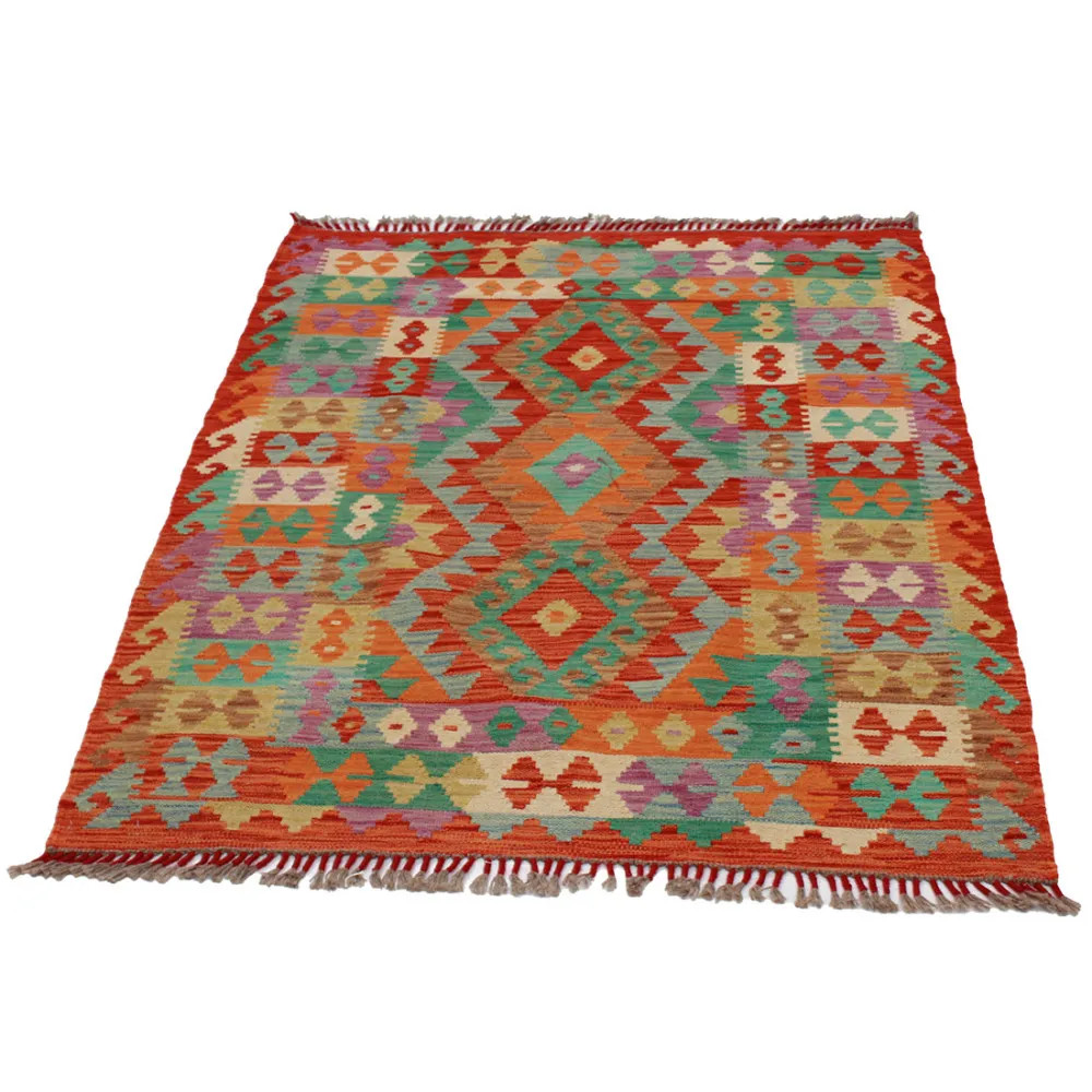 Les tapis Kilim Chobi sont très populaires dans le monde entier. En Afghanistan, ils sont tissés à la main par les nomades et les villageois. Ce type de tapis Kilim afghan est plus dense et plus compact que les autres tapis Kilim. Une technique spéciale est utilisée pour le tissage, ce qui les rend plus fins et donc relativement plus rapides à tisser que les tapis Oriental traditionnels. Après leur fabrication, ils sont lavés quatre fois et séchés au soleil. Les tapis Kilim afghans ont un design antique traditionnel et chaleureux, mais ils sont souvent disponibles dans une version plus moderne. Ils sont très populaires, principalement parce qu'ils s'harmonisent parfaitement avec les couleurs de la plupart des pièces et qu'ils entrent dans la catégorie des tapis colorés à prix raisonnable. Ils peuvent être utilisés comme élément décoratif dans la maison, comme tapis mural ou comme revêtement de sol traditionnel. Le Kilim est le tapis idéal pour le salon ou même pour les couloirs ou les halls d'entrée en tant que tapis coureur.