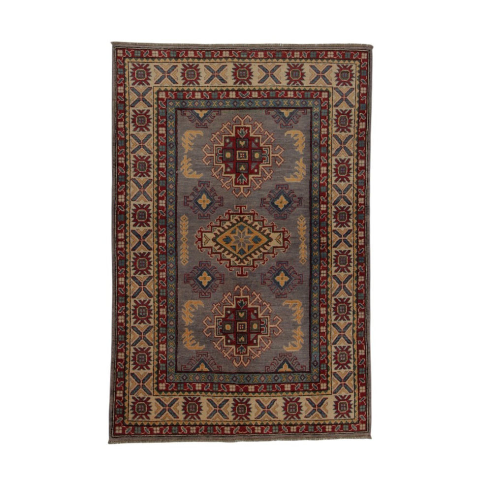 Vous êtes à la recherche d'un tapis Oriental coloré ? Alors jetez un coup d'œil à ce tapis Kazak, qui vous captivera avec ses belles couleurs ludiques. Ce tapis Kazak est durable, facile à nettoyer et à aspirer. Il convient mieux aux pièces dont l'intérieur est classique. Comme c'est un tapis Oriental multicolore, il est facile d'assortir les couleurs des meubles ou d'autres textiles. Ce tapis Kazak est lavé quatre fois et séché au soleil. Il ne contient aucune substance allergène. Il peut également être utilisé dans les pièces équipées d'un chauffage par le sol, mais dans ce cas, il est conseillé de passer l'aspirateur sous le tapis, pour éviter les mites. Les couleurs du tapis Kazak sont dérivées de plantes présentes dans la nature. Le tapis Kazak est principalement fait en Afghanistan ou dans les régions du Pakistan peuplées d'Afghans. Comme il s'agit d'un tapis durable, il peut être utilisé dans les salles de séjour les plus fréquentées. Il ajoute de l'élégance et du prestige à votre salon. Le tapis Kazak est fait à 100 % de laine afghane. Il se caractérise principalement par des motifs géométriques. Il s'agit d'un tapis noué à la main de très grande qualité.