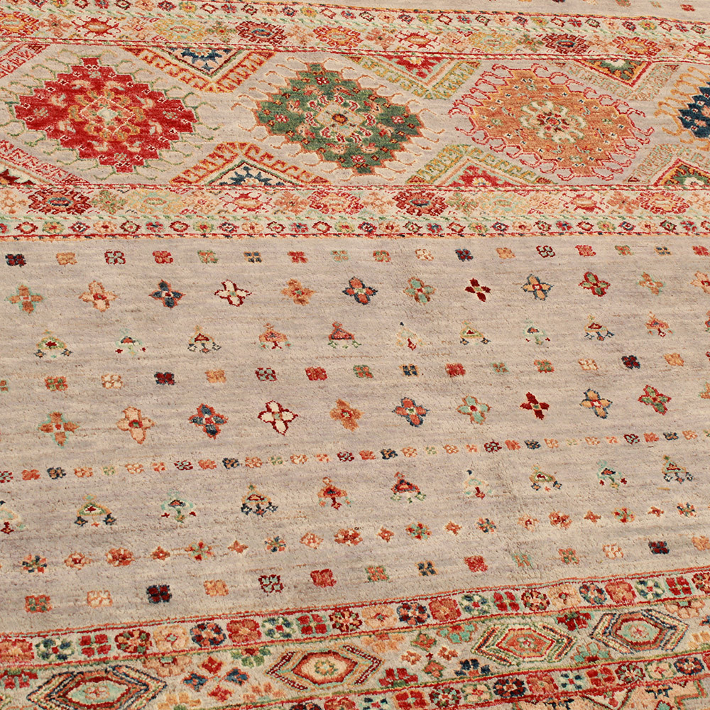 Le tapis Oriental Shawal est la combinaison parfaite de l'élégance classique et de la modernité. Que vous préfériez un style minimaliste ou classique, le tapis Oriental de Shawal est parfait pour n'importe quel salon. Ses couleurs enjouées égayeront l'ambiance de votre pièce, et sa polyvalence lui permet de se fondre sans effort dans le mobilier et les autres textiles. Le tapis Shawal fait main est extrêmement résistant et durable, ce qui vous permet de profiter de sa beauté et de son confort pendant longtemps. En outre, les tapis Shawal présentent des caractéristiques que même les clients les plus exigeants apprécieront. Fait en Afghanistan par des personnes vivant dans un environnement urbain, le tapis en laine Shawal dégage une impression de confort et de convivialité, qu'il soit utilisé comme tapis de salon ou comme tapis coureur dans un couloir. Les motifs variés et les couleurs riches du tapis attirent le regard. La laine est de haute qualité et extrêmement durable, de sorte que le tapis conservera longtemps son état d'origine, même en cas d'utilisation intensive. Les tapis Shawal faits main ne sont pas seulement beaux, ils constituent également un investissement pratique et durable. La fabrication d'un tapis Oriental Shawal demande énormément de travail et de patience. Pour teindre le tapis Oriental, les couleurs sont extraites de plantes et utilisées pour teindre la laine. Ce tapis Oriental est fait à 100% à la main, il est donc la combinaison parfaite de la technique de nouage traditionnelle des Gheordes et de l'artisanat de maître. Une fois le tapis en laine terminé, il est lavé quatre fois et séché au soleil pour que les couleurs conservent longtemps leur éclat et leur durabilité. Ce soin méticuleux et ce contrôle de la qualité contribuent à la haute qualité et à la longue durée de vie du tapis. De nombreuses personnes pensent à tort que plus un tapis est épais, plus il est de qualité et durable. Il s'agit pourtant d'une idée fausse. L'épaisseur dépend plutôt de la tonte, tandis que la durabilité d'un tapis dépend de la densité des nœuds et de la qualité de la laine. Le tapis Shawal fait main s'adapte parfaitement à tous les styles de pièces à vivre et peut devenir un véritable bijou dans votre maison grâce à son aspect époustouflant. Les tapis en laine de Shawal sont également connus sous le nom de tapis Khorjin. Lorsque vous commandez un tapis en laine de Shawal sur le site du magasin de tapis CarpetDepo, vous êtes assuré d'être satisfait de sa qualité et de son aspect. Toutefois, si vous estimez qu'il ne répond pas à vos attentes, ne vous inquiétez pas, nous nous chargeons du retour et du remboursement. La satisfaction de nos clients est notre priorité absolue.