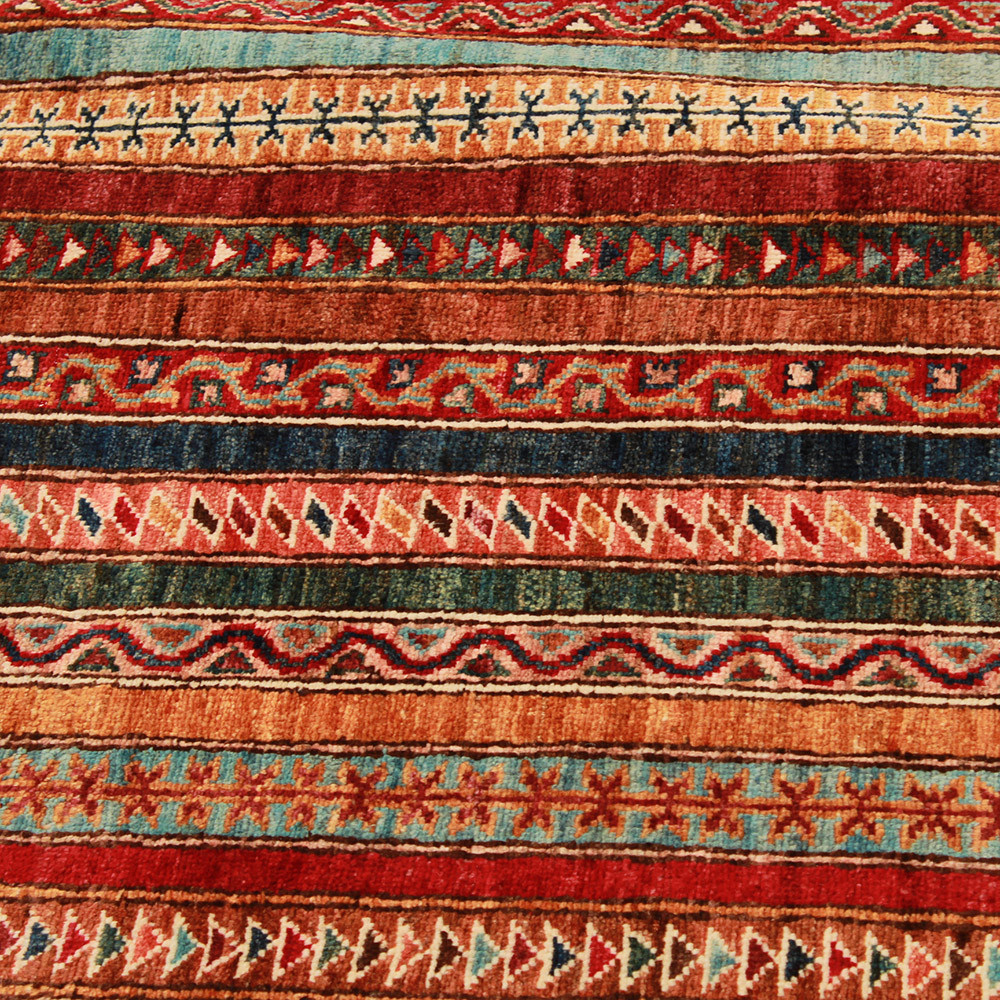 Le tapis Oriental Shawal est la combinaison parfaite de l'élégance classique et de la modernité. Que vous préfériez un style minimaliste ou classique, le tapis Oriental de Shawal est parfait pour n'importe quel salon. Ses couleurs enjouées égayeront l'ambiance de votre pièce, et sa polyvalence lui permet de se fondre sans effort dans le mobilier et les autres textiles. Le tapis Shawal fait main est extrêmement résistant et durable, ce qui vous permet de profiter de sa beauté et de son confort pendant longtemps. En outre, les tapis Shawal présentent des caractéristiques que même les clients les plus exigeants apprécieront. Fait en Afghanistan par des personnes vivant dans un environnement urbain, le tapis en laine Shawal dégage une impression de confort et de convivialité, qu'il soit utilisé comme tapis de salon ou comme tapis coureur dans un couloir. Les motifs variés et les couleurs riches du tapis attirent le regard. La laine est de haute qualité et extrêmement durable, de sorte que le tapis conservera longtemps son état d'origine, même en cas d'utilisation intensive. Les tapis Shawal faits main ne sont pas seulement beaux, ils constituent également un investissement pratique et durable. La fabrication d'un tapis Oriental Shawal demande énormément de travail et de patience. Pour teindre le tapis Oriental, les couleurs sont extraites de plantes et utilisées pour teindre la laine. Ce tapis Oriental est fait à 100% à la main, il est donc la combinaison parfaite de la technique de nouage traditionnelle des Gheordes et de l'artisanat de maître. Une fois le tapis en laine terminé, il est lavé quatre fois et séché au soleil pour que les couleurs conservent longtemps leur éclat et leur durabilité. Ce soin méticuleux et ce contrôle de la qualité contribuent à la haute qualité et à la longue durée de vie du tapis. De nombreuses personnes pensent à tort que plus un tapis est épais, plus il est de qualité et durable. Il s'agit pourtant d'une idée fausse. L'épaisseur dépend plutôt de la tonte, tandis que la durabilité d'un tapis dépend de la densité des nœuds et de la qualité de la laine. Le tapis Shawal fait main s'adapte parfaitement à tous les styles de pièces à vivre et peut devenir un véritable bijou dans votre maison grâce à son aspect époustouflant. Les tapis en laine de Shawal sont également connus sous le nom de tapis Khorjin. Lorsque vous commandez un tapis en laine de Shawal sur le site du magasin de tapis CarpetDepo, vous êtes assuré d'être satisfait de sa qualité et de son aspect. Toutefois, si vous estimez qu'il ne répond pas à vos attentes, ne vous inquiétez pas, nous nous chargeons du retour et du remboursement. La satisfaction de nos clients est notre priorité absolue.