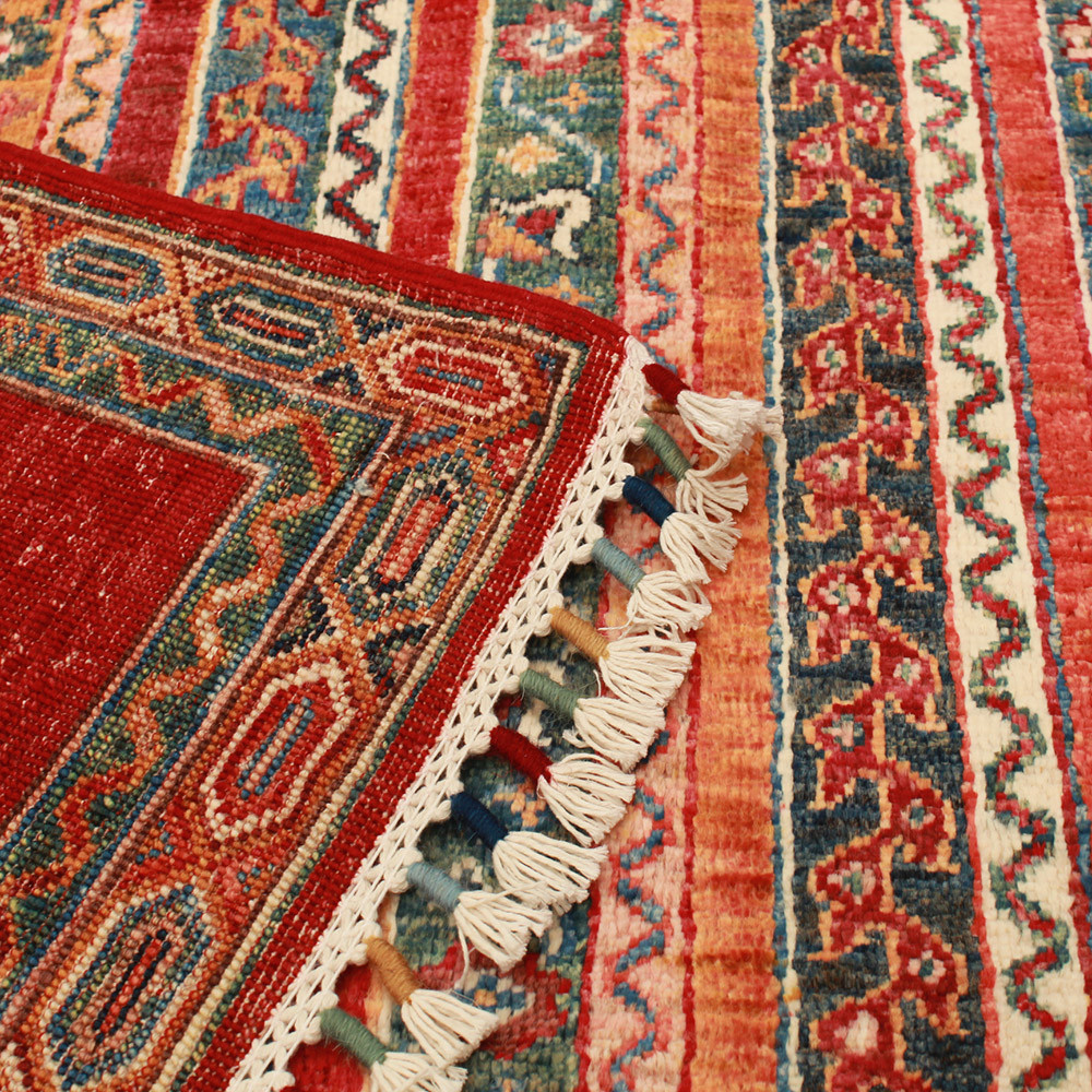 Le tapis Oriental Shawal est la combinaison parfaite de l'élégance classique et de la modernité. Que vous préfériez un style minimaliste ou classique, le tapis Oriental de Shawal est parfait pour n'importe quel salon. Ses couleurs enjouées égayeront l'ambiance de votre pièce, et sa polyvalence lui permet de se fondre sans effort dans le mobilier et les autres textiles. Le tapis Shawal fait main est extrêmement résistant et durable, ce qui vous permet de profiter de sa beauté et de son confort pendant longtemps. En outre, les tapis Shawal présentent des caractéristiques que même les clients les plus exigeants apprécieront. Fait en Afghanistan par des personnes vivant dans un environnement urbain, le tapis en laine Shawal dégage une impression de confort et de convivialité, qu'il soit utilisé comme tapis de salon ou comme tapis coureur dans un couloir. Les motifs variés et les couleurs riches du tapis attirent le regard. La laine est de haute qualité et extrêmement durable, de sorte que le tapis conservera longtemps son état d'origine, même en cas d'utilisation intensive. Les tapis Shawal faits main ne sont pas seulement beaux, ils constituent également un investissement pratique et durable. La fabrication d'un tapis Oriental Shawal demande énormément de travail et de patience. Pour teindre le tapis Oriental, les couleurs sont extraites de plantes et utilisées pour teindre la laine. Ce tapis Oriental est fait à 100% à la main, il est donc la combinaison parfaite de la technique de nouage traditionnelle des Gheordes et de l'artisanat de maître. Une fois le tapis en laine terminé, il est lavé quatre fois et séché au soleil pour que les couleurs conservent longtemps leur éclat et leur durabilité. Ce soin méticuleux et ce contrôle de la qualité contribuent à la haute qualité et à la longue durée de vie du tapis. De nombreuses personnes pensent à tort que plus un tapis est épais, plus il est de qualité et durable. Il s'agit pourtant d'une idée fausse. L'épaisseur dépend plutôt de la tonte, tandis que la durabilité d'un tapis dépend de la densité des nœuds et de la qualité de la laine. Le tapis Shawal fait main s'adapte parfaitement à tous les styles de pièces à vivre et peut devenir un véritable bijou dans votre maison grâce à son aspect époustouflant. Les tapis en laine de Shawal sont également connus sous le nom de tapis Khorjin. Lorsque vous commandez un tapis en laine de Shawal sur le site du magasin de tapis CarpetDepo, vous êtes assuré d'être satisfait de sa qualité et de son aspect. Toutefois, si vous estimez qu'il ne répond pas à vos attentes, ne vous inquiétez pas, nous nous chargeons du retour et du remboursement. La satisfaction de nos clients est notre priorité absolue.