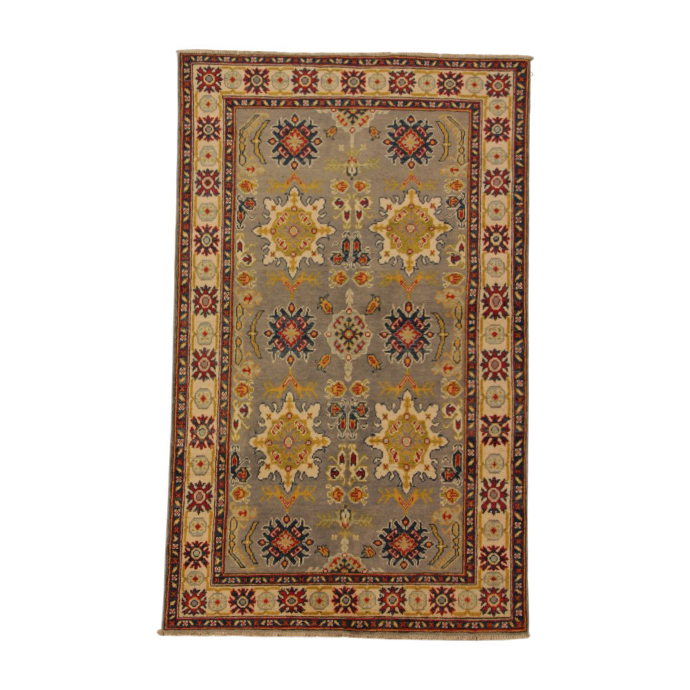 Vous êtes à la recherche d'un tapis Oriental coloré ? Alors jetez un coup d'œil à ce tapis Kazak, qui vous captivera avec ses belles couleurs ludiques. Ce tapis Kazak est durable, facile à nettoyer et à aspirer. Il convient mieux aux pièces dont l'intérieur est classique. Comme c'est un tapis Oriental multicolore, il est facile d'assortir les couleurs des meubles ou d'autres textiles. Ce tapis Kazak est lavé quatre fois et séché au soleil. Il ne contient aucune substance allergène. Il peut également être utilisé dans les pièces équipées d'un chauffage par le sol, mais dans ce cas, il est conseillé de passer l'aspirateur sous le tapis, pour éviter les mites. Les couleurs du tapis Kazak sont dérivées de plantes présentes dans la nature. Le tapis Kazak est principalement fait en Afghanistan ou dans les régions du Pakistan peuplées d'Afghans. Comme il s'agit d'un tapis durable, il peut être utilisé dans les salles de séjour les plus fréquentées. Il ajoute de l'élégance et du prestige à votre salon. Le tapis Kazak est fait à 100 % de laine afghane. Il se caractérise principalement par des motifs géométriques. Il s'agit d'un tapis noué à la main de très grande qualité.