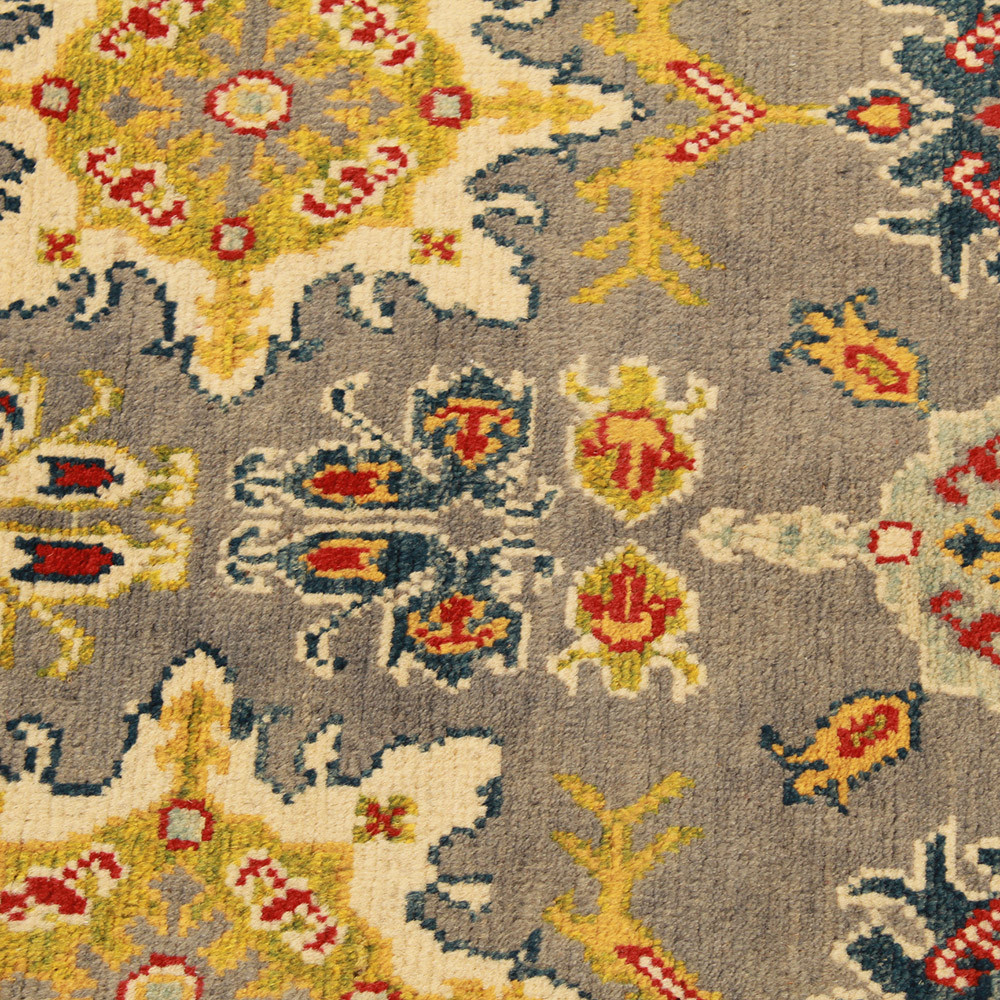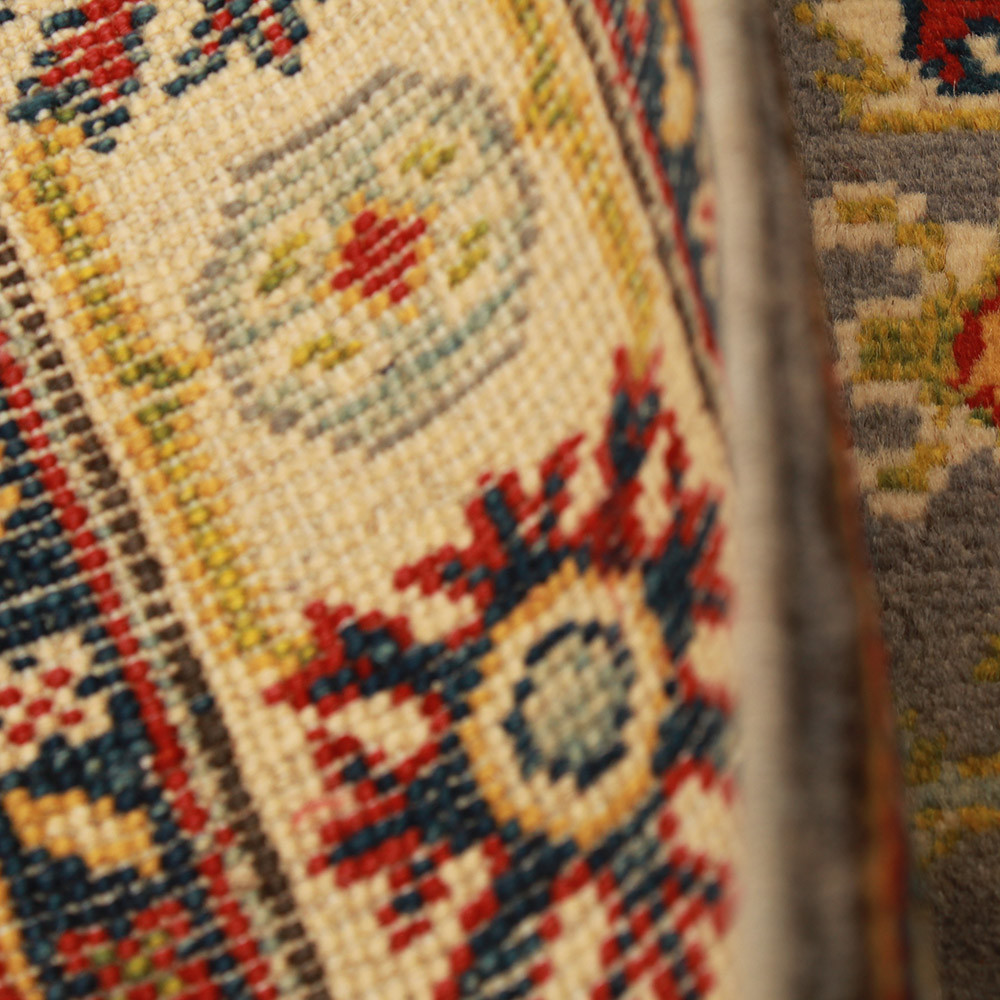 Le tapis Kazak est devenu populaire principalement en raison de ses couleurs chaudes et claires à la fois. Elle est le plus souvent recommandée par les architectes d'intérieur pour les maisons à la décoration classique. Ses motifs sont inspirés des motifs géométriques russes. On l'appelle tapis Kazak, mais c'est un tapis afghan. La laine utilisée est colorée avec des teintures végétales naturelles. Le Tapis Oriental Kazak se caractérise par une forte palette de couleurs. Son avantage est que, grâce à ses couleurs vives, il n'assombrit pas l'atmosphère de votre pièce. En tant que tapis de salon, il se marie parfaitement avec les couleurs des canapés ou des tables basses. En tant que tapis de chambre à coucher, il est également utilisé sur les deux côtés du lit. Dans ce cas, il suffit que les couleurs des tapis soient assorties. Chaque étape de la fabrication du tapis est faite à 100 % à la main. Grâce à sa durabilité, il peut être posé dans les salons les plus fréquentés. La technique de nouage des tapis Oriental Kazak est appelée Gheordes, ce qui signifie double nouage. Une fois le tapis terminé, il est lavé quatre fois, puis laissé à sécher au soleil. Il ne contient aucune substance allergène.