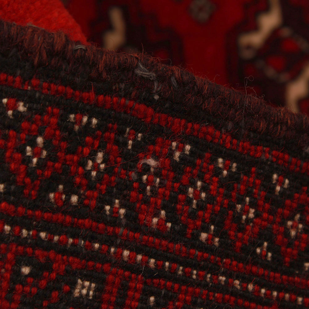 Si vous recherchez un tapis authentique au caractère distinctif, à la fois décoratif et pratique, ce tapis turkmène est un excellent choix. Ce petit tapis, appelé "Balisht Nakhsha", est associé à la région de Mashhad en Iran et était à l’origine connu comme un objet tribal (utilisé comme coussin/housse de coussin). Aujourd’hui, il est de plus en plus populaire en tant que tapis au motif audacieux, qui peut être placé n’importe où dans l’intérieur. Le tapis noué à la main est l’une des garanties les plus importantes de durabilité et de richesse des détails.