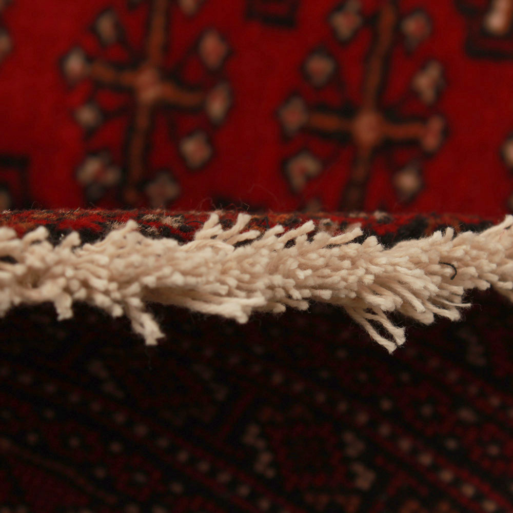 Si vous recherchez un tapis authentique au caractère distinctif, à la fois décoratif et pratique, ce tapis turkmène est un excellent choix. Ce petit tapis, appelé "Balisht Nakhsha", est associé à la région de Mashhad en Iran et était à l’origine connu comme un objet tribal (utilisé comme coussin/housse de coussin). Aujourd’hui, il est de plus en plus populaire en tant que tapis au motif audacieux, qui peut être placé n’importe où dans l’intérieur. Le tapis noué à la main est l’une des garanties les plus importantes de durabilité et de richesse des détails.