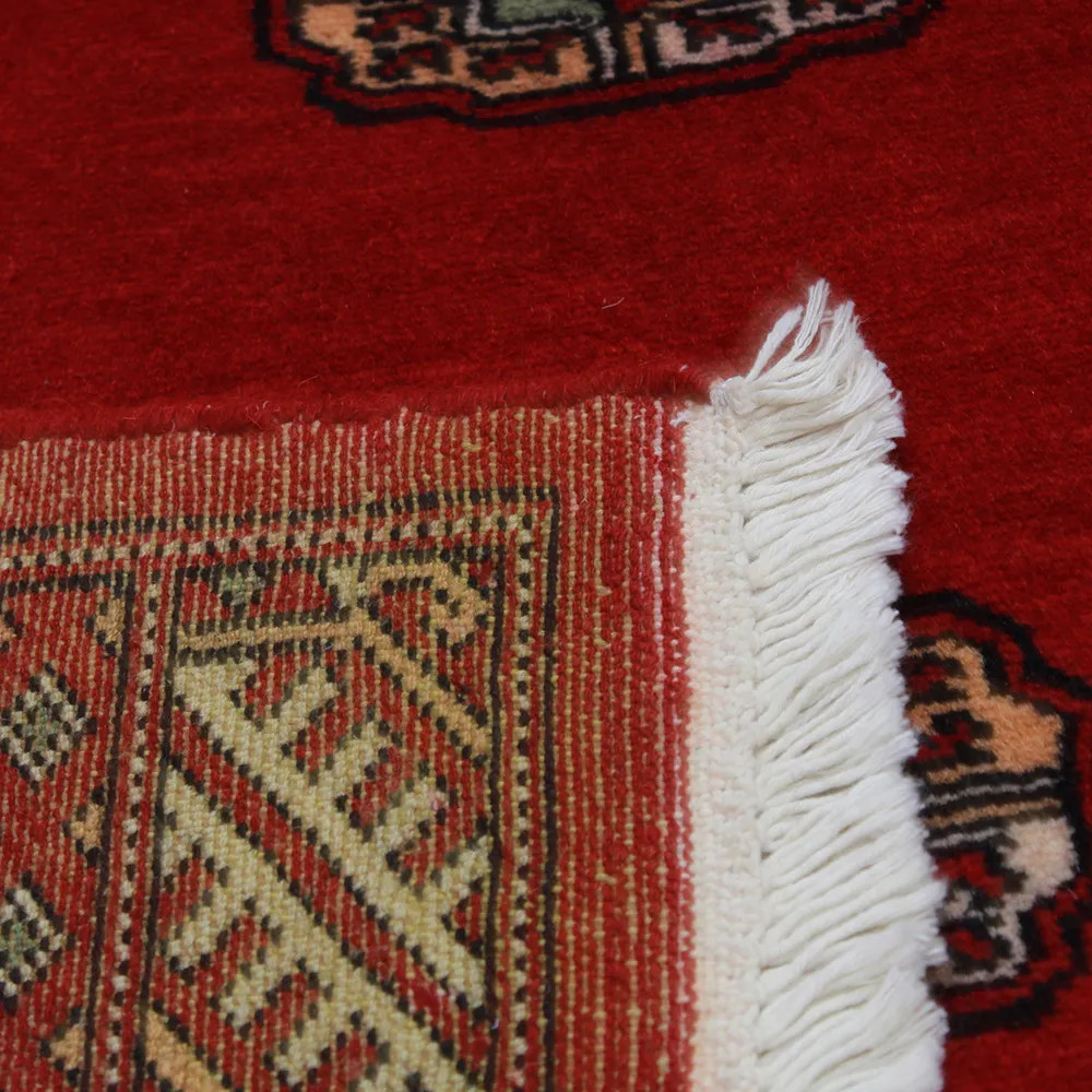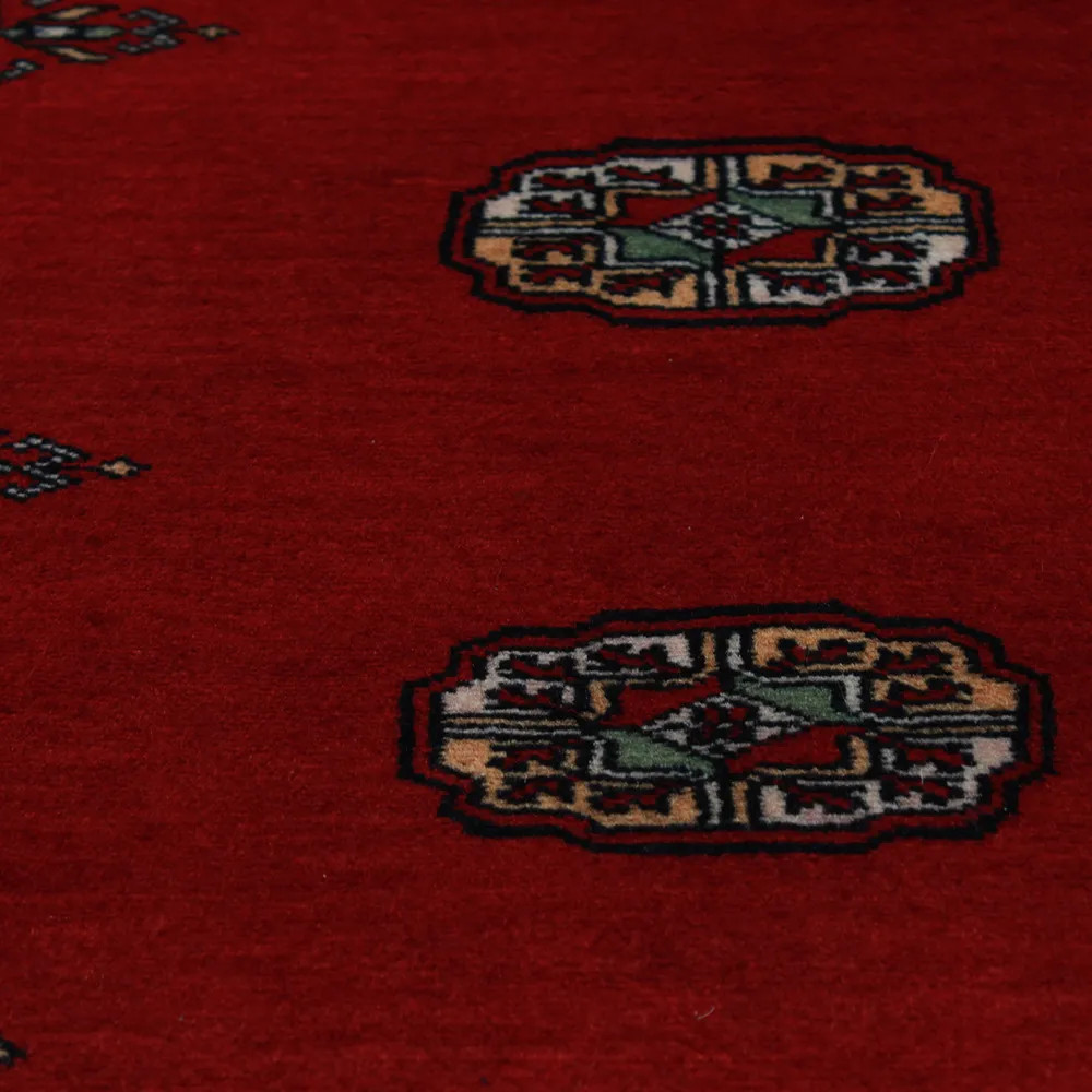 Le tapis pakistanais est fait dans les provinces du Pendjab et du Sindh. Reflet d'une tradition séculaire, ce tapis Oriental est un hommage au savoir-faire et à l'art des artisans. Les tapis pakistanais sont réputés dans le monde entier pour leur qualité et sont porteurs du riche héritage culturel du Pakistan. Les techniques de conception et de fabrication de ce tapis Oriental proviennent du peuple Turkmène, qui les échangeait sur le vieux marché aux tapis de la célèbre ville de Boukhara. L'un des motifs les plus célèbres (Boukhara) tire son nom de cette ville et constitue depuis lors l'une des caractéristiques de ces magnifiques tapis Oriental. Les tapis pakistanais sont faits de laine mérinos de Nouvelle-Zélande, ce qui leur confère une qualité et une durabilité exceptionnelles. Grâce à leur nouage dense, ils sont durables et résistants à l'usure et aux déchirures dues à l'usage quotidien. Cet élégant tapis est aujourd'hui considéré comme l'un des plus beaux tapis en laine du Pakistan. Après avoir été fait et tondu, le tapis est lavé quatre fois, puis soigneusement séché pour conserver ses couleurs éclatantes et sa solidité. Avec leurs motifs géométriques et leurs couleurs élégantes, ils ajoutent une ambiance unique à votre intérieur, qu'il s'agisse d'un tapis de salon pour rehausser l'élégance de la pièce ou d'un tapis de chambre à coucher qui ajoute confort et douceur à vos pas. Le tapis coureur pakistanais est également un choix idéal pour les couloirs. Si vous êtes à la recherche d'un tapis Oriental unique, fait de matériaux de qualité et témoignant d'un savoir-faire artistique, les tapis en laine pakistanais sont le choix idéal. La combinaison harmonieuse de motifs sophistiqués et de couleurs vives créera une atmosphère magique dans n'importe quelle pièce. Un tapis pakistanais n'est pas seulement esthétique, il est aussi extrêmement pratique. Sa surface densément nouée est durable et résistante, ce qui lui permet de rester en bon état pendant de nombreuses années. En outre, les propriétés naturelles de la laine lui permettent d'isoler le sol, ce qui lui confère d'excellentes propriétés d'isolation thermique. Les tapis pakistanais sont disponibles dans une large gamme de tailles et de formes, afin que chacun puisse trouver celui qui convient le mieux à sa maison.