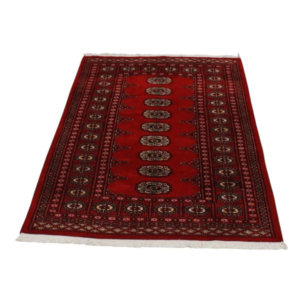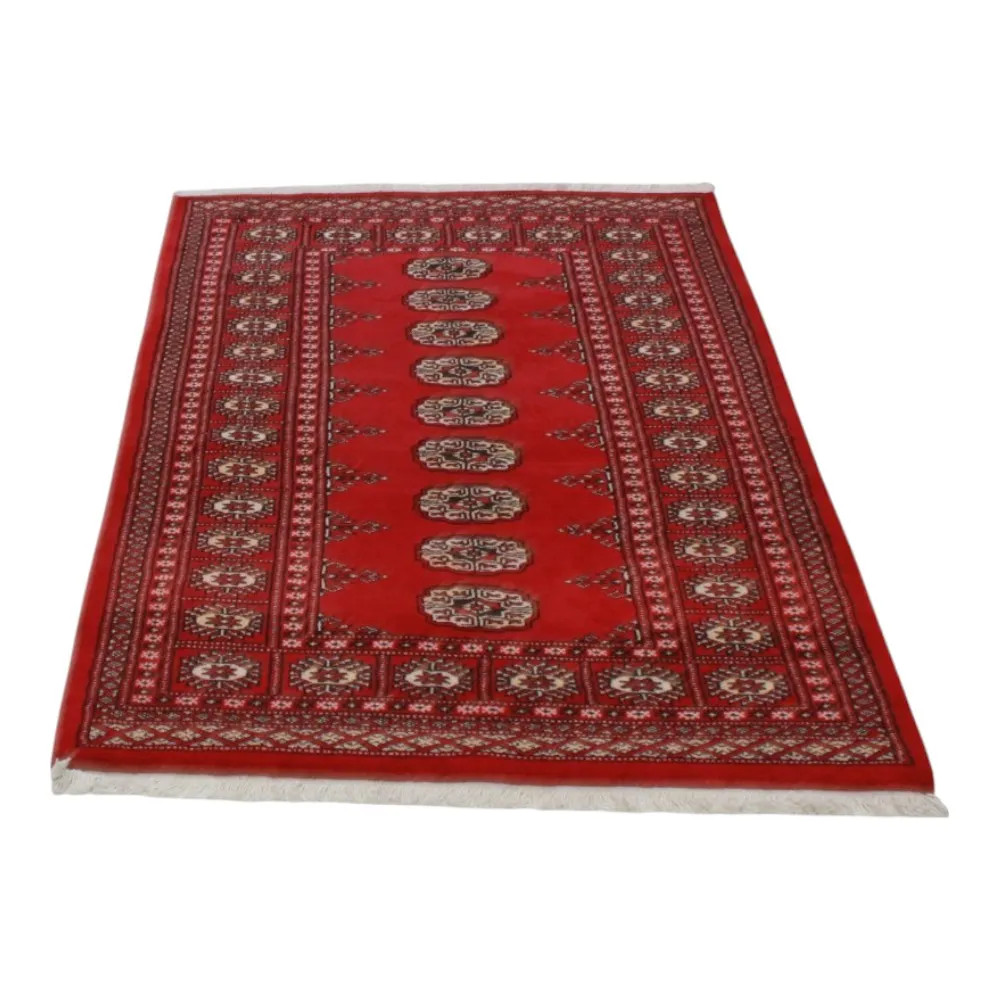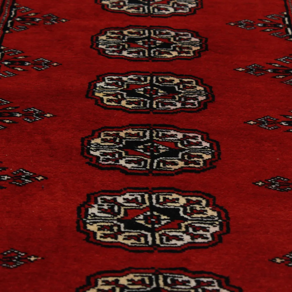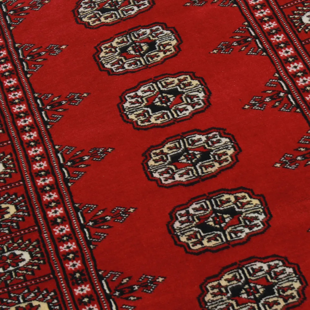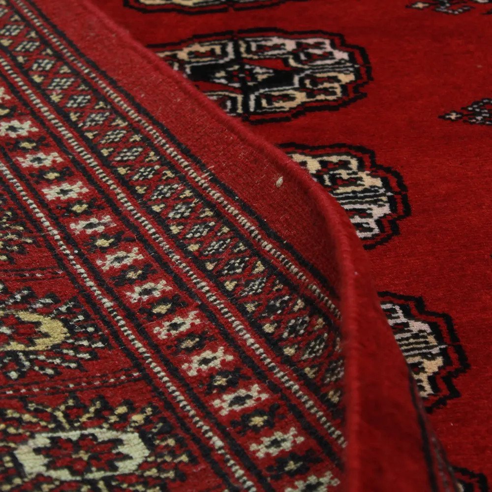 Le tapis pakistanais est fait dans les provinces du Pendjab et du Sindh. Reflet d'une tradition séculaire, ce tapis Oriental est un hommage au savoir-faire et à l'art des artisans. Les tapis pakistanais sont réputés dans le monde entier pour leur qualité et sont porteurs du riche héritage culturel du Pakistan. Les techniques de conception et de fabrication de ce tapis Oriental proviennent du peuple Turkmène, qui les échangeait sur le vieux marché aux tapis de la célèbre ville de Boukhara. L'un des motifs les plus célèbres (Boukhara) tire son nom de cette ville et constitue depuis lors l'une des caractéristiques de ces magnifiques tapis Oriental. Les tapis pakistanais sont faits de laine mérinos de Nouvelle-Zélande, ce qui leur confère une qualité et une durabilité exceptionnelles. Grâce à leur nouage dense, ils sont durables et résistants à l'usure et aux déchirures dues à l'usage quotidien. Cet élégant tapis est aujourd'hui considéré comme l'un des plus beaux tapis en laine du Pakistan. Après avoir été fait et tondu, le tapis est lavé quatre fois, puis soigneusement séché pour conserver ses couleurs éclatantes et sa solidité. Avec leurs motifs géométriques et leurs couleurs élégantes, ils ajoutent une ambiance unique à votre intérieur, qu'il s'agisse d'un tapis de salon pour rehausser l'élégance de la pièce ou d'un tapis de chambre à coucher qui ajoute confort et douceur à vos pas. Le tapis coureur pakistanais est également un choix idéal pour les couloirs. Si vous êtes à la recherche d'un tapis Oriental unique, fait de matériaux de qualité et témoignant d'un savoir-faire artistique, les tapis en laine pakistanais sont le choix idéal. La combinaison harmonieuse de motifs sophistiqués et de couleurs vives créera une atmosphère magique dans n'importe quelle pièce. Un tapis pakistanais n'est pas seulement esthétique, il est aussi extrêmement pratique. Sa surface densément nouée est durable et résistante, ce qui lui permet de rester en bon état pendant de nombreuses années. En outre, les propriétés naturelles de la laine lui permettent d'isoler le sol, ce qui lui confère d'excellentes propriétés d'isolation thermique. Les tapis pakistanais sont disponibles dans une large gamme de tailles et de formes, afin que chacun puisse trouver celui qui convient le mieux à sa maison.