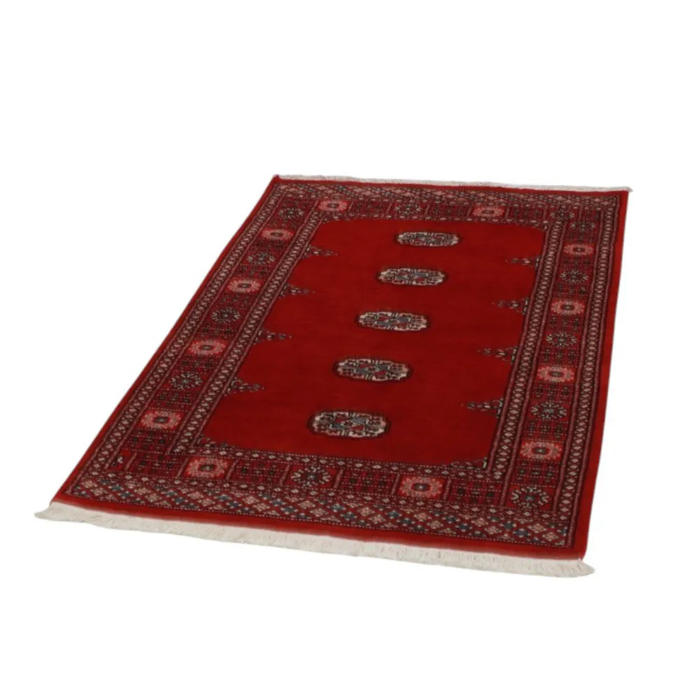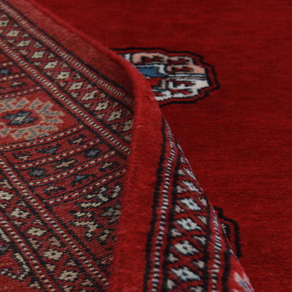 Le tapis pakistanais est fait dans les provinces du Pendjab et du Sindh. Reflet d'une tradition séculaire, ce tapis Oriental est un hommage au savoir-faire et à l'art des artisans. Les tapis pakistanais sont réputés dans le monde entier pour leur qualité et sont porteurs du riche héritage culturel du Pakistan. Les techniques de conception et de fabrication de ce tapis Oriental proviennent du peuple Turkmène, qui les échangeait sur le vieux marché aux tapis de la célèbre ville de Boukhara. L'un des motifs les plus célèbres (Boukhara) tire son nom de cette ville et constitue depuis lors l'une des caractéristiques de ces magnifiques tapis Oriental. Les tapis pakistanais sont faits de laine mérinos de Nouvelle-Zélande, ce qui leur confère une qualité et une durabilité exceptionnelles. Grâce à leur nouage dense, ils sont durables et résistants à l'usure et aux déchirures dues à l'usage quotidien. Cet élégant tapis est aujourd'hui considéré comme l'un des plus beaux tapis en laine du Pakistan. Après avoir été fait et tondu, le tapis est lavé quatre fois, puis soigneusement séché pour conserver ses couleurs éclatantes et sa solidité. Avec leurs motifs géométriques et leurs couleurs élégantes, ils ajoutent une ambiance unique à votre intérieur, qu'il s'agisse d'un tapis de salon pour rehausser l'élégance de la pièce ou d'un tapis de chambre à coucher qui ajoute confort et douceur à vos pas. Le tapis coureur pakistanais est également un choix idéal pour les couloirs. Si vous êtes à la recherche d'un tapis Oriental unique, fait de matériaux de qualité et témoignant d'un savoir-faire artistique, les tapis en laine pakistanais sont le choix idéal. La combinaison harmonieuse de motifs sophistiqués et de couleurs vives créera une atmosphère magique dans n'importe quelle pièce. Un tapis pakistanais n'est pas seulement esthétique, il est aussi extrêmement pratique. Sa surface densément nouée est durable et résistante, ce qui lui permet de rester en bon état pendant de nombreuses années. En outre, les propriétés naturelles de la laine lui permettent d'isoler le sol, ce qui lui confère d'excellentes propriétés d'isolation thermique. Les tapis pakistanais sont disponibles dans une large gamme de tailles et de formes, afin que chacun puisse trouver celui qui convient le mieux à sa maison.