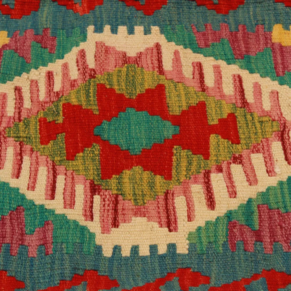 Découvrez ce coussin décoratif Kilim tissé à la main, qui est le mélange parfait du tissage traditionnel des tapis afghans et d'une décoration d'intérieur élégante. Cette housse de coussin Kilim unique donnera vie à n'importe quel intérieur grâce à son aspect élégant, ses couleurs riches et ses motifs étonnants. La housse de coussin tissée à la main est faite à partir d'un tapis Kilim afghan original, qui s'harmonise parfaitement avec différents meubles et styles de décoration intérieure. Les couleurs vives et les motifs uniques créent un impact visuel excitant, améliorant l'ambiance de votre pièce, qu'il s'agisse d'un salon ou d'une chambre à coucher. Faite de laine afghane, la taie d'oreiller Kilim est facile à nettoyer, l'entretien est donc simple. De plus, la durabilité du matériau garantit que vous pourrez profiter de la beauté d'un coussin décoratif Kilim sur vos meubles pendant des années. Les couleurs et les motifs du coussin Kilim resteront éclatants pendant longtemps, grâce au lavage minutieux effectué après le processus de tissage. Ce traitement minutieux garantit la longévité et la beauté originale de la housse de coussin. Les coussins décoratifs Kilim colorés offrent un large éventail de possibilités en matière de décoration d'intérieur. Que vous souhaitiez créer une atmosphère unique dans votre pièce ou mettre en valeur vos meubles existants, un coussin Kilim coloré est le choix idéal.
