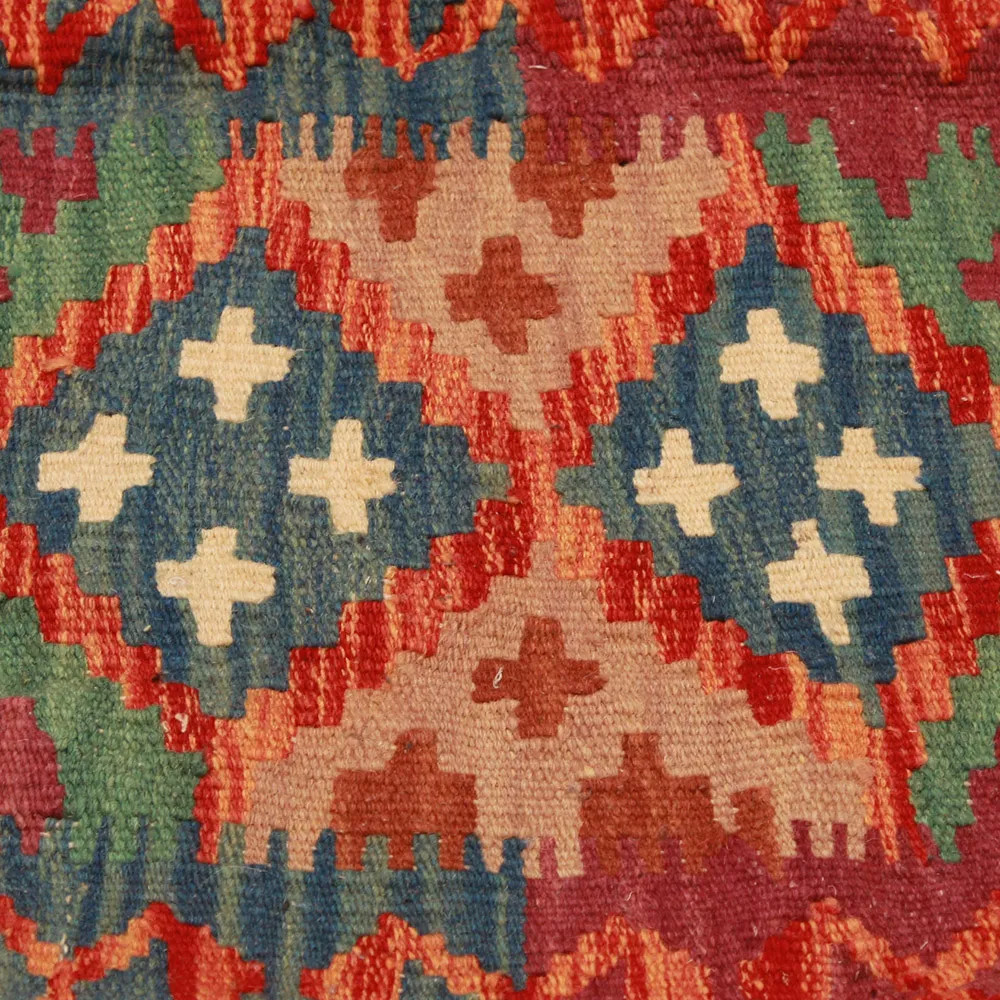 Le processus de fabrication du coussin est fascinant et méticuleux. Des générations de tisserands afghans qualifiés se transmettent les techniques traditionnelles de tissage à la main utilisées pour créer les coussins en laine. Chaque fil de laine est traité avec des teintures végétales naturelles. L'utilisation de laine de haute qualité garantit la durabilité et la résistance des taies d'oreiller. La laine apporte une chaleur naturelle, ce qui rend la taie d'oreiller non seulement décorative mais aussi confortable. Les taies d'oreiller Kilim sont dotées d'un support en coton solide qui prolonge leur durée de vie et assure leur stabilité structurelle. Le support en coton les rend également faciles à nettoyer et à entretenir, de sorte qu'elles conservent leur beauté et leur fonctionnalité pendant longtemps.