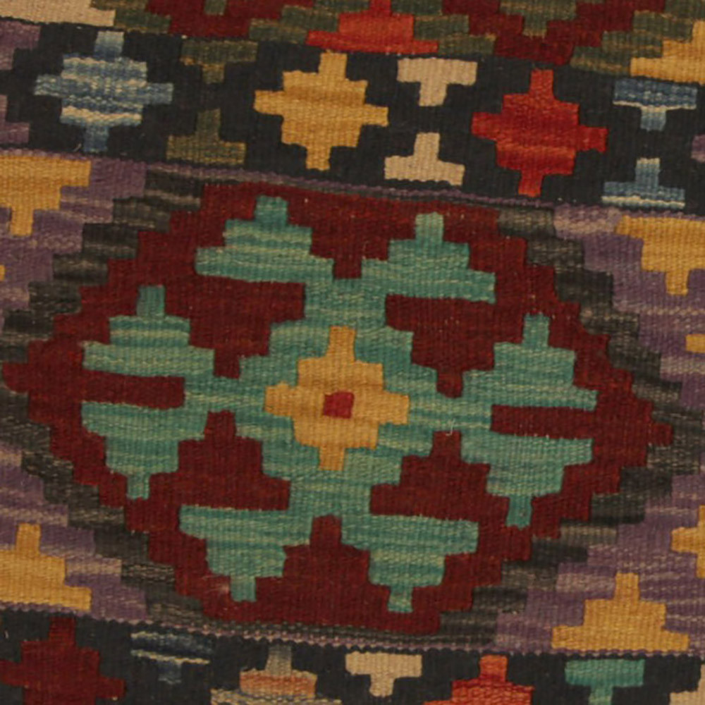 Le processus de fabrication du coussin est fascinant et méticuleux. Des générations de tisserands afghans qualifiés se transmettent les techniques traditionnelles de tissage à la main utilisées pour créer les coussins en laine. Chaque fil de laine est traité avec des teintures végétales naturelles. L'utilisation de laine de haute qualité garantit la durabilité et la résistance des taies d'oreiller. La laine apporte une chaleur naturelle, ce qui rend la taie d'oreiller non seulement décorative mais aussi confortable. Les taies d'oreiller Kilim sont dotées d'un support en coton solide qui prolonge leur durée de vie et assure leur stabilité structurelle. Le support en coton les rend également faciles à nettoyer et à entretenir, de sorte qu'elles conservent leur beauté et leur fonctionnalité pendant longtemps.