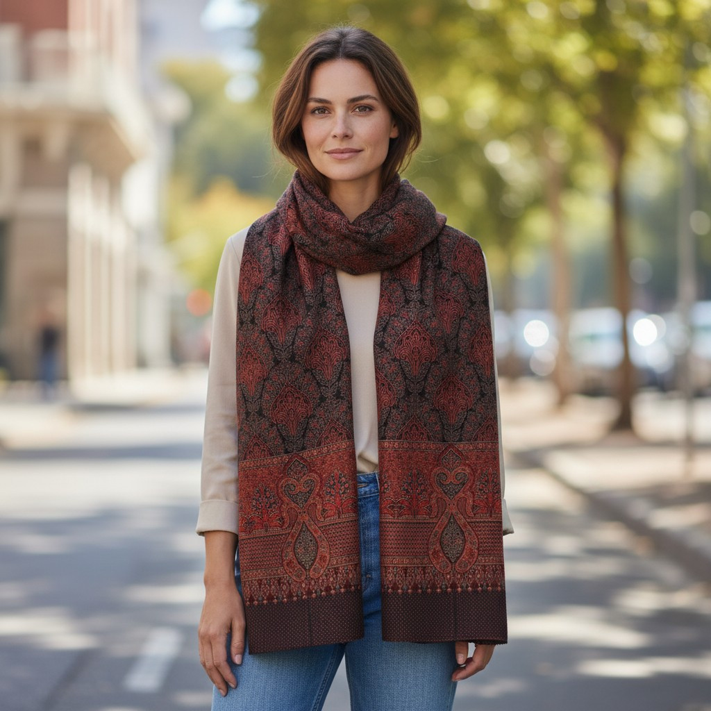 Châle élégant 215x105 mauve-bleu écharpe fine pour femme