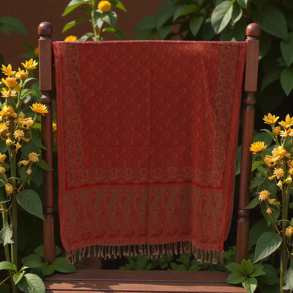 Châle rouge 215x105 grande écharpe femme en coton